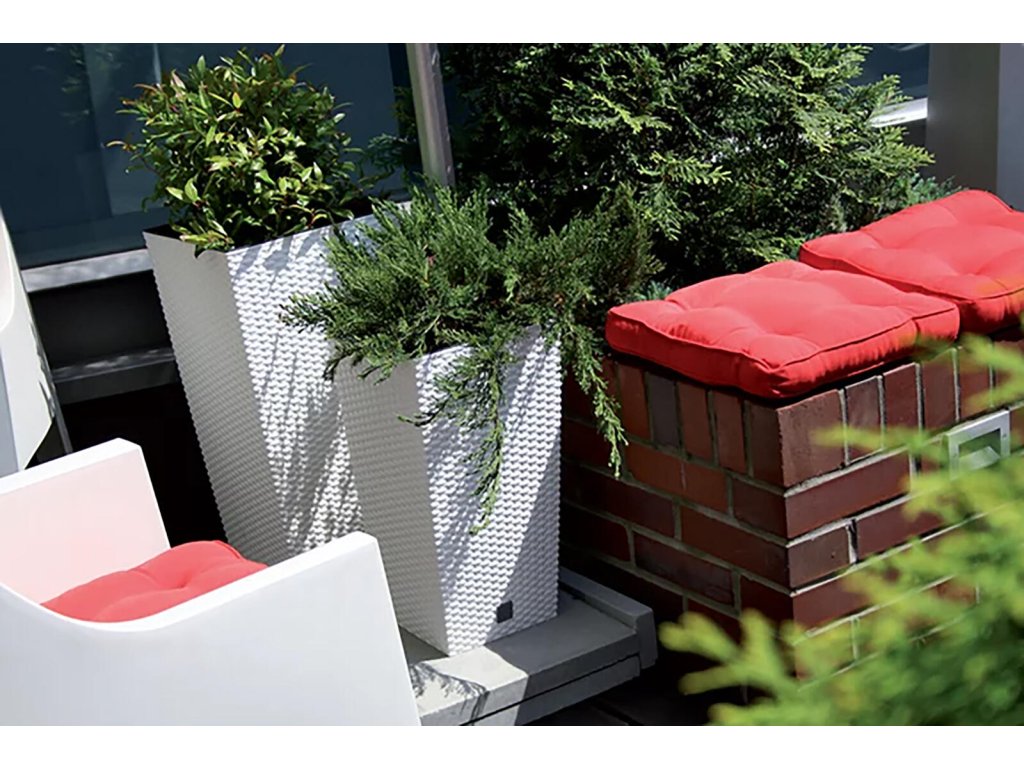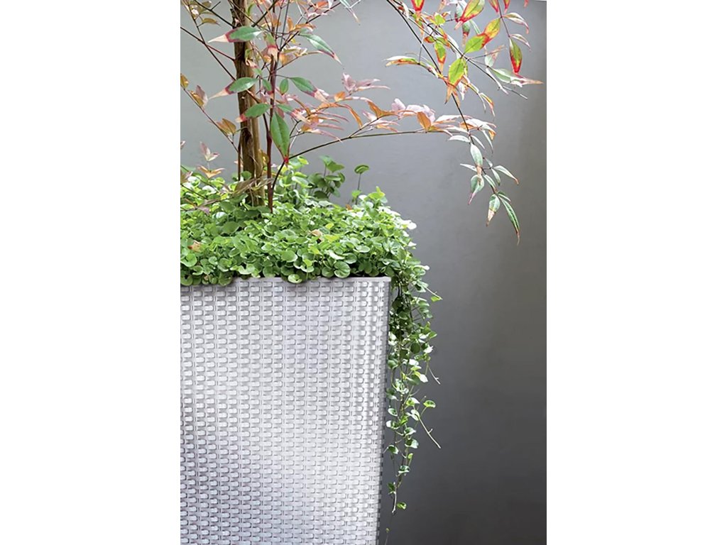 Plastový obal RATO SQUARE, který věrně imituje ratanový výplet, je vhodný do interiéru, na terasy i balkóny.