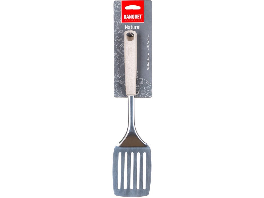 Obracečka s otvory, 34,5 x 8 cm, NATURAL, nerez / PP.rozměry: 34,5 x 8 cm
