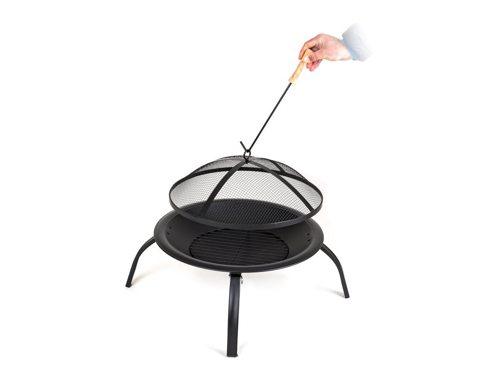 Ohniště je usazeno na snadno složitelných nožkách, umožňujících úsporné skladování.