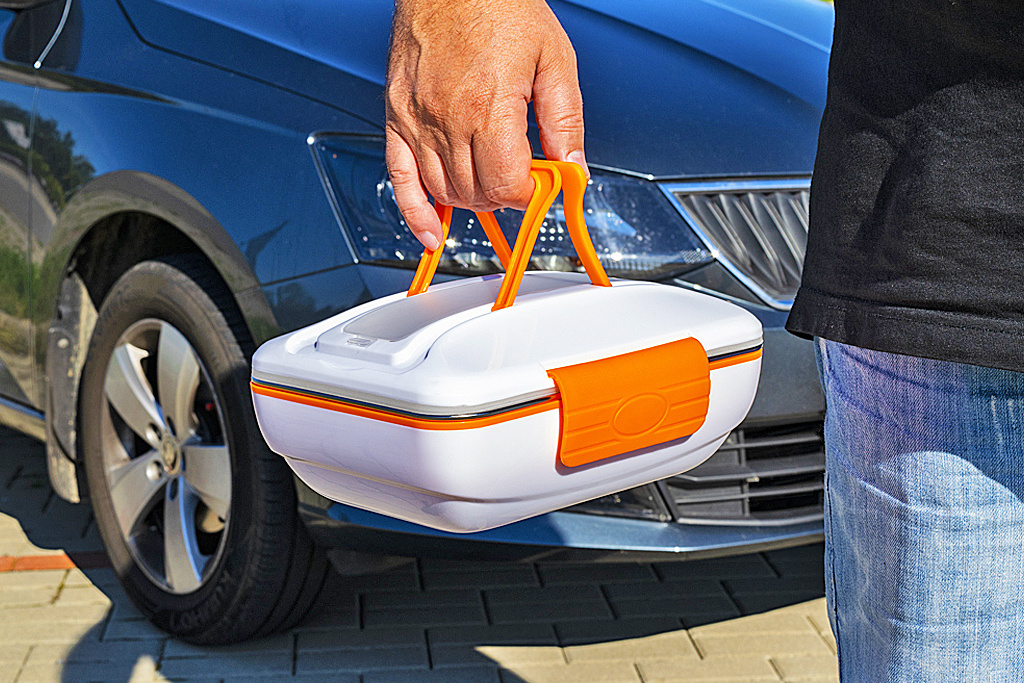 Ohřívací box na jídlo do auta i kanceláře, oranžový