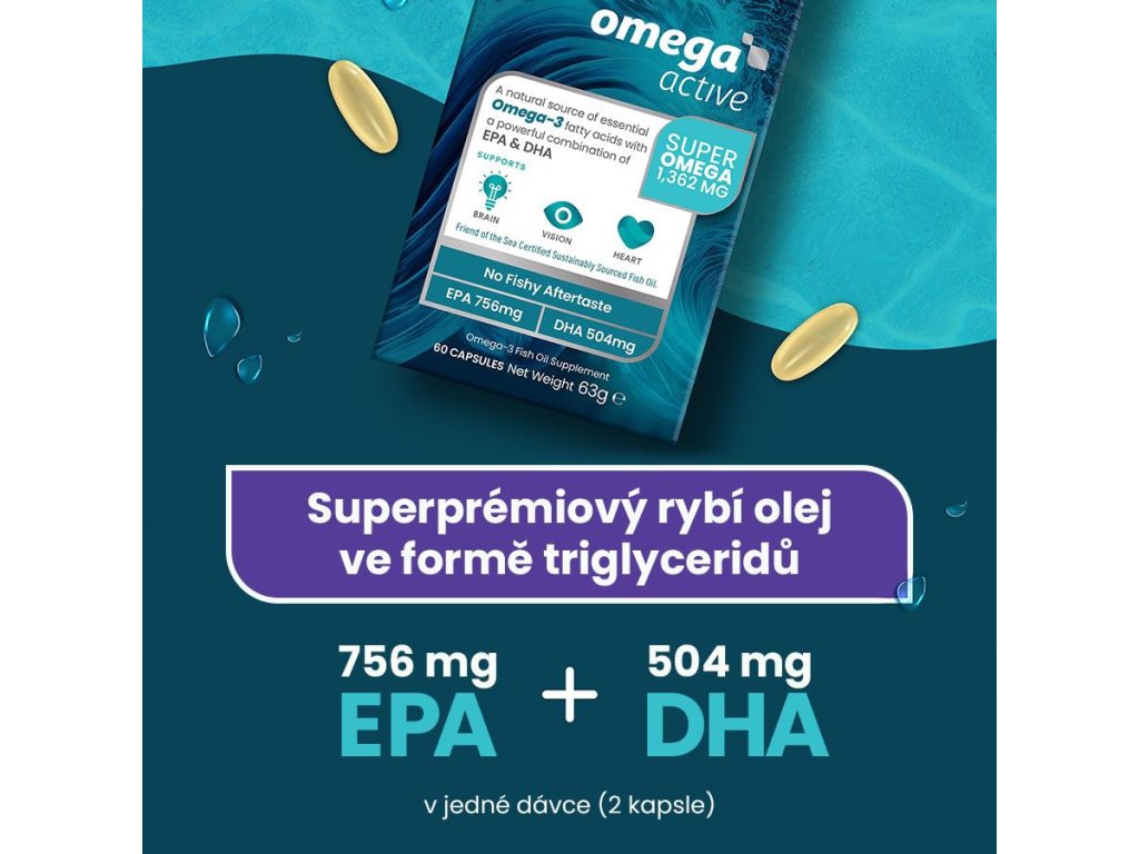 Omega Active je špičkový produkt z kategorie omega-3 rybích olejů. S obsahem 756 mg EPA a 504 mg DHA v jedné dávce (2 kapsle).