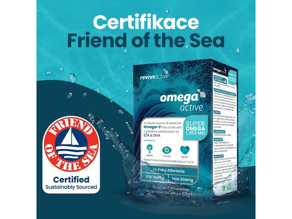| Omega Active je vhodný pro všechny starší 12 let, je také velmi vhodný pro těhotné a kojící maminky, obsažené omega-3 mají vlastnosti spojené s fungováním mozku a srdce. Omega Active rybí olej pochází z udržitelného zdroje certifikovaného organizací Friends of the Sea®. Tato prestižní mezinárodní certifikace je udělována pouze produktům respektujícím křehkou rovnováhu mořského ekosystému a zároveň dodržujícím etické obchodní standardy. | ||