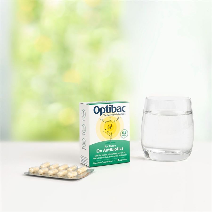 Optibac On Antibiotics je doplněk stravy s obsahem tří speciálních druhů probiotik určených po podporu během léčby antibiotiky. Tyto speciálně vybrané kmeny byly prověřený klinickými zkouškami, aby obstály při současném užívání s antibiotiky a prošly bez úhony kyselým prostředí žaludku. On Antibiotics obsahují dva druhy kultur z kmenů Lactobacillus a jeden druh kmene Bifidobacterium. Optibac On Antibiotics je určený pro obnovu mikrobiumu poškozeného antibiotiky. Spolu s obnovou rovnováhy prospěšných kultur v zažívacím traktu se obnovuje i obranný štít a celková fyzická i psychická kondice.
