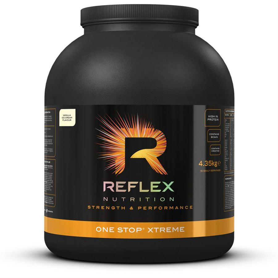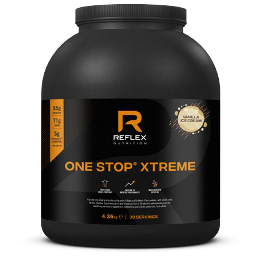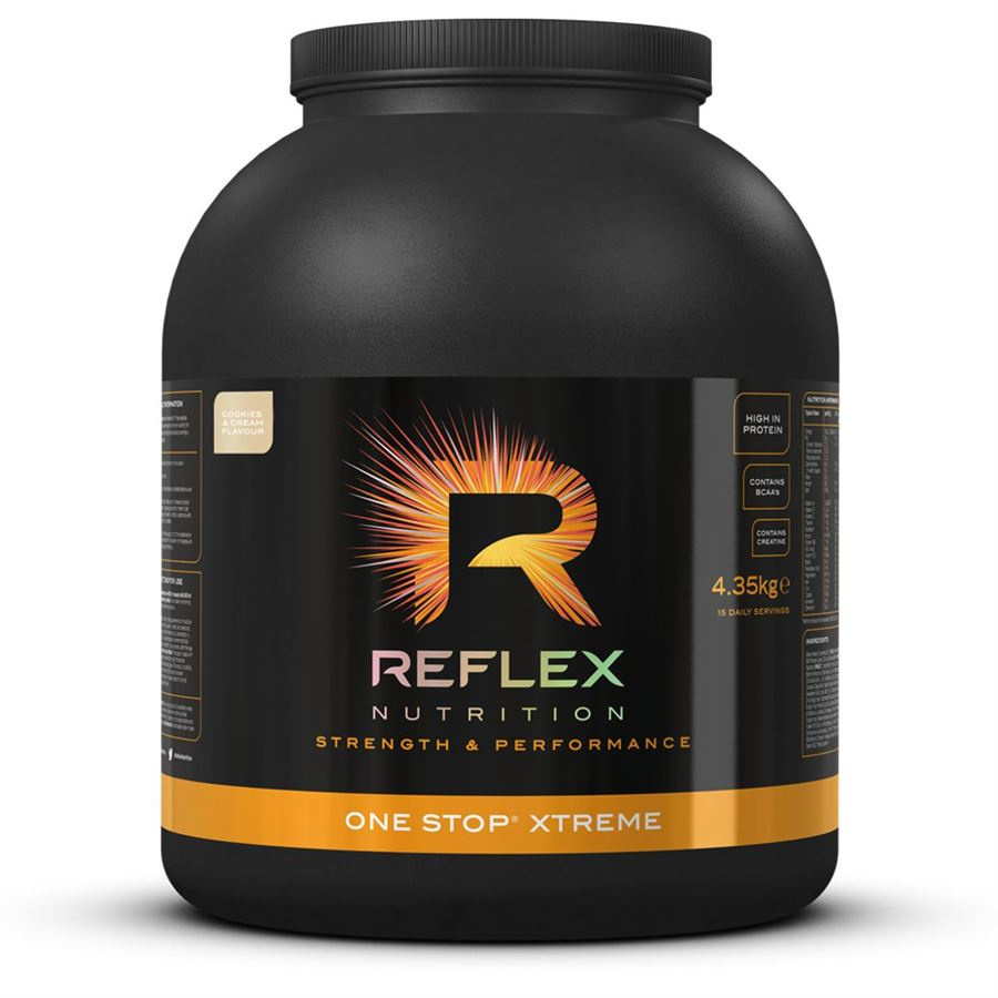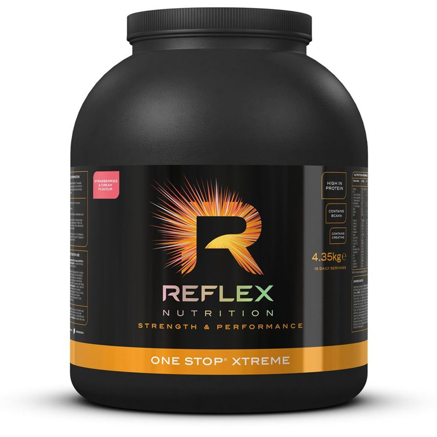 One Stop XTREME je nejsilnější hardcore verzí společnosti Reflex Nutrition, která byla vyvinuta za posledních 15 let! Koncepce celého produktu je určena pro všechny sportovce, jejichž cílem je nárůst svalové hmoty. Základ One Stop XTREME tvoří patentovaná směs bílkovin s postupným uvolňováním Quattro®, která je jako VŽDY v každé výrobní šarži produktu testována na garantovaný obsah použitých bílkovin a aminokyselin