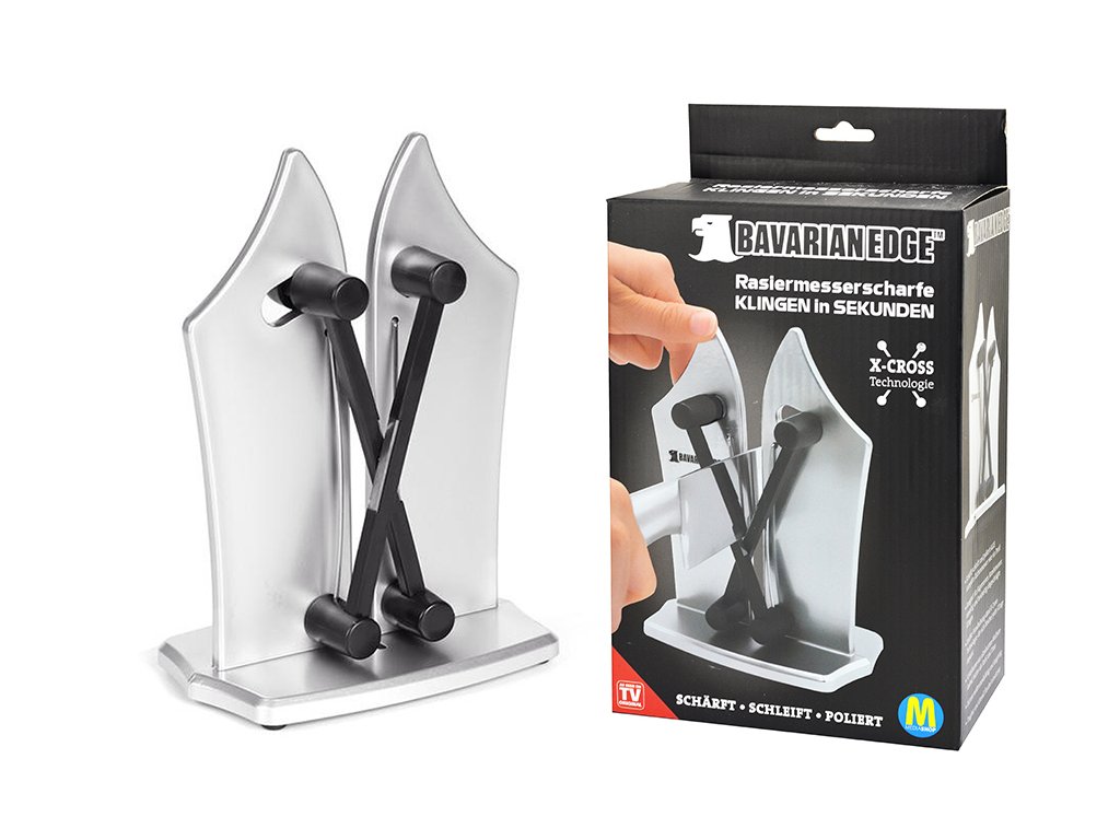 Bavarian Edge - originál známý z TV! Bavarian Edge vyzývá na souboj všechny vaše tupé kuchyňské nože, protože s Bavarian Edge nabrousíte, naostří a vyleští všechny vaše tupé kuchyňské nože jako profesionál a to absolutně bez námahy.   Ostřete, bruste a leštěte všechny tupé kuchyňské nože jako profesionál Ideální na všechny nože, s jedno stranným, oboustranným, nebo zkoseným ostřím Jednoduché používání díky X-Cross-Technologii, která se přizpůsobí každému ostří Brusné tyče z extra tvrdého wolfram-karbidu, tvrdšího než ocel a titan Extrémně odolný a trvanlivý Přenosný a flexibilně použitelný Na všechny typy nožů Díky X-Cross-Technologii se Bavarian Edge přizpůsobí všem typům nožů s různým druhem ostří, jako je nůž s vroubkovaným ostřím, kombinůž, nůž s jedno stranným nebo oboustranným ostřím. Odolné brusné tyče Extrémně odolné brusné tyče  jsou vyrobeny z extra tvrdého wolfram-karbidu, takže jsou tvrdší než ocel a titan. Snadno přenosný a odolný Krom toho je Bavarian Edge snadno přenosný, extrémně odolný, trvanlivý a můžete jej použít kdekoliv, není totiž nutná žádná montáž. Obsak balení: 1 x Bavarian Edge 3x nástavec 1x štěteček na čištění 1x USB nabíjecí kabel 1x podrobný návod