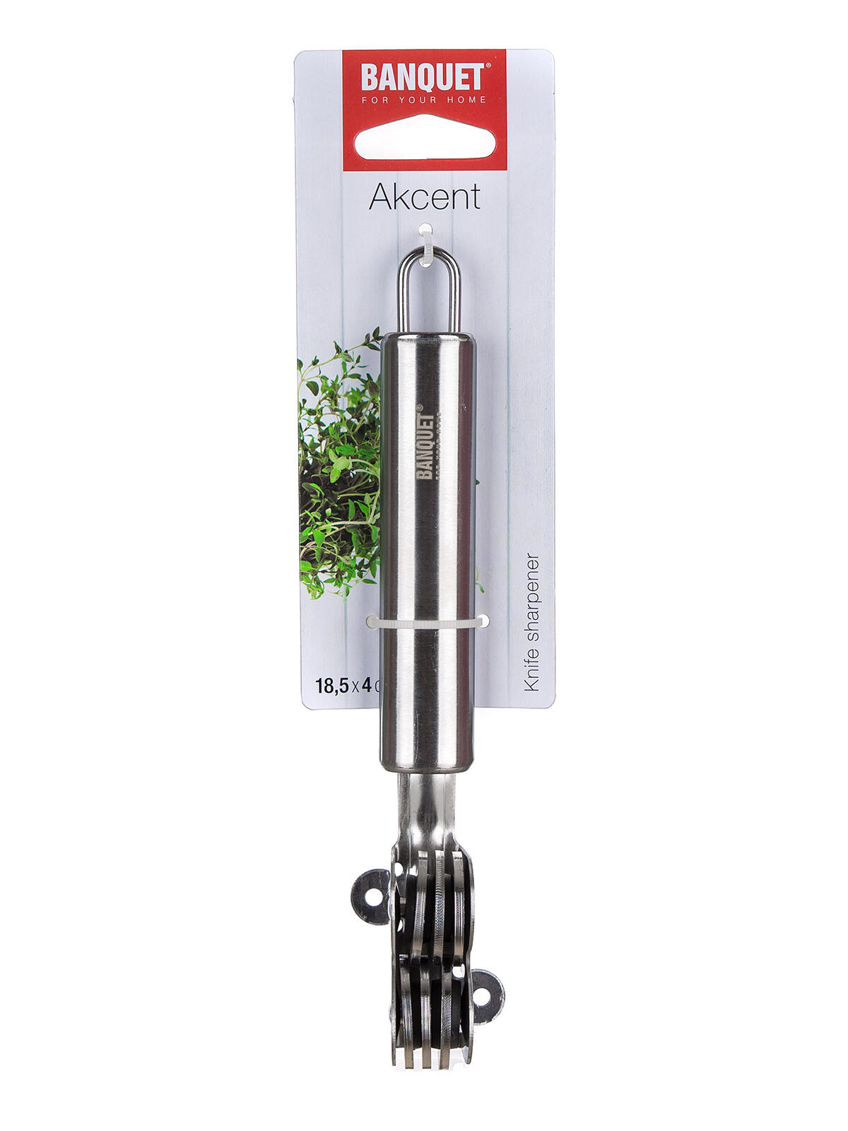 Brousek na nože AKCENT, z nerezové oceli, určený pro rychlé nabroušení ocelových nožů.