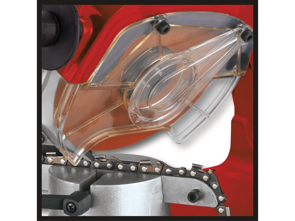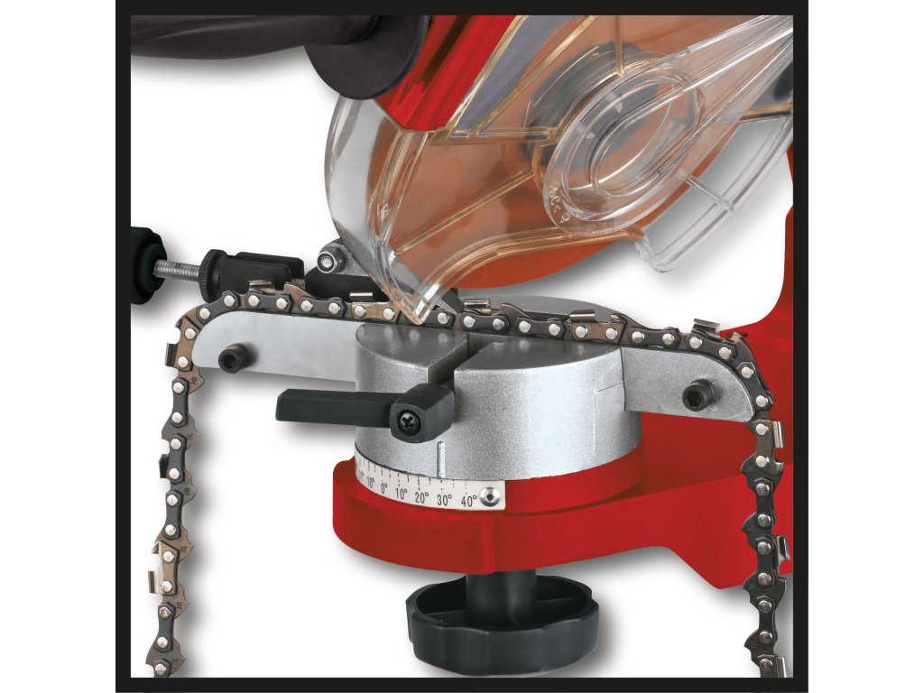 Ostřička pilového řetězu GC-CS 235 E je kompaktní, robustní a spolehlivý pomocník pro precizní ostření všech běžných pilových řetězů. Díky otočnému upínacímu zařízení vybavenému stupnicí pro přesné nastavení úhlu broušení lze naostřit všechny články pilového řetězu, aniž by jej bylo nutné znovu napínat. Možnost nastavení vrcholového úhlu rozšiřuje rozsah použití přístroje. Omezení hloubky chrání řetěz před nadměrným úběrem materiálu. Průhledné průhledítko v kombinaci s osvětlením umožňuje přesnou a bezpečnou práci i při nedostatku denního světla.