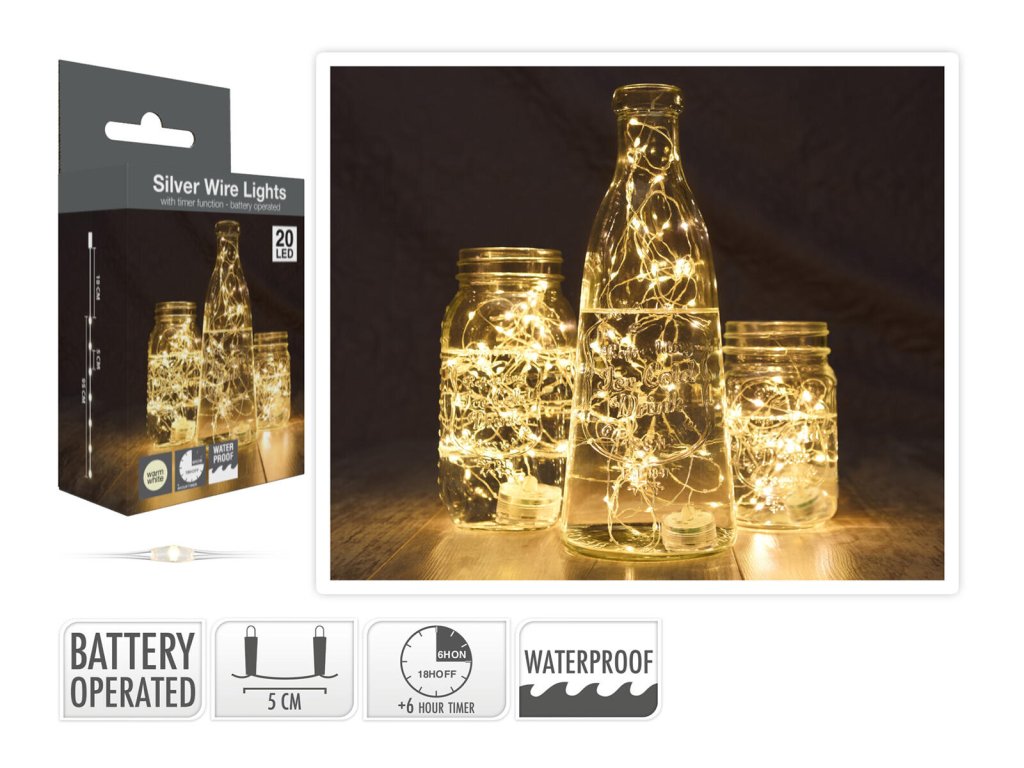 Dekorační osvětlení 20LED, 1,3 m, s časovačem, voděodolné.
