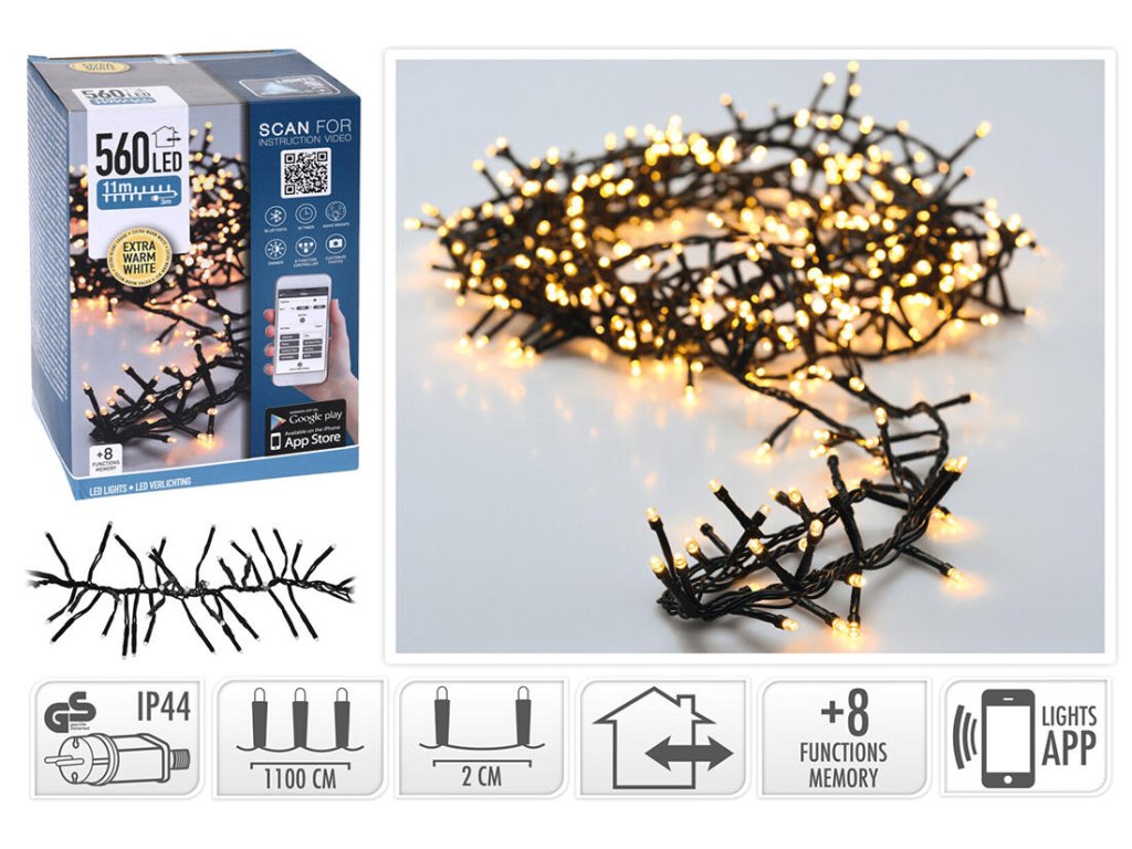 Osvětlení vánoční 11 m, 560LED, teplá BÍ, APP, 8 funkcí.délka: 11 m