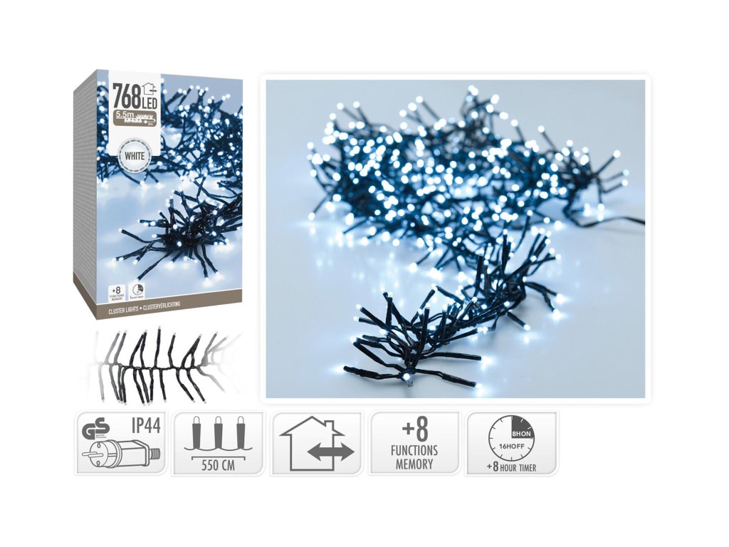 Osvětlení vánoční 5,5 m, 768LED, studená BÍ, 8 funkcí, s časovačem.