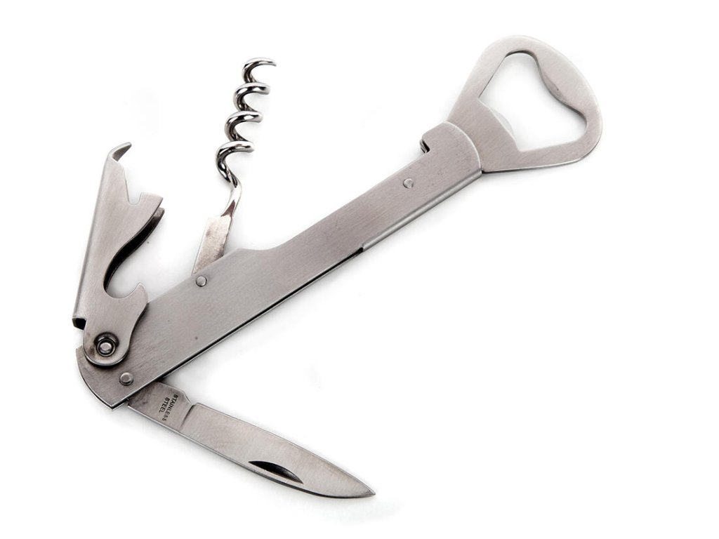 Číšnický otvírák je univerzální otvírák / nůž na lahve, v nerezovém provedení.