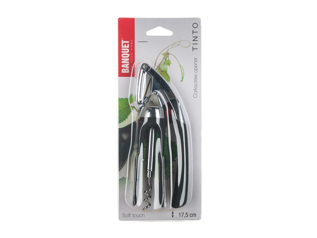Otvírák na láhve TINTO 17,5 cm má pákový systém, který umožní otevření lahve rychle a bez námahy. Otvírák je vyrobený ze slitinu zinku s pochromovaným povrchem. Rukojeti jsou ze speciálního plastu, který má protiskluzovou úpravu. Výrobek není vhodný do myčky nádobí.