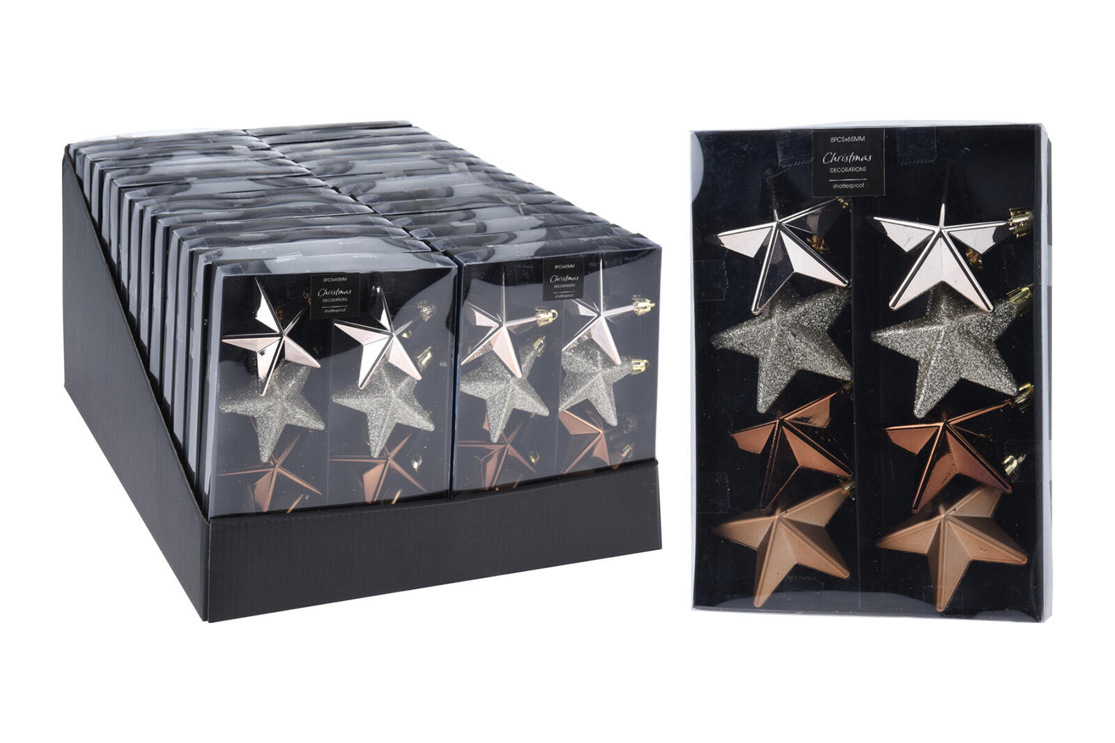 Vánoční ozdoba HVĚZDA 6,5 cm, HN, ZLA, STŘ, mix (8 ks).
