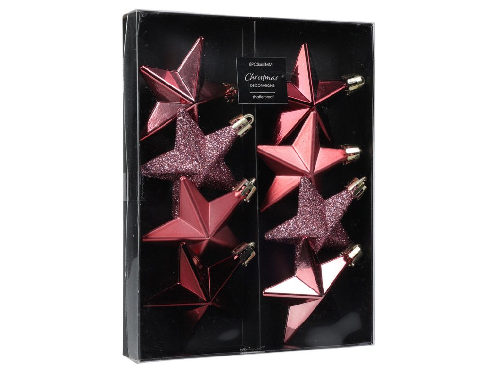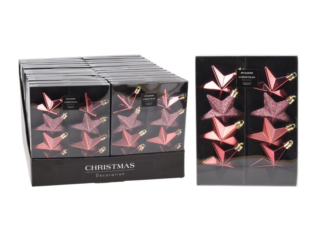 Vánoční ozdoba HVĚZDA 6,5 cm, RŮŽ, mix (8 ks).