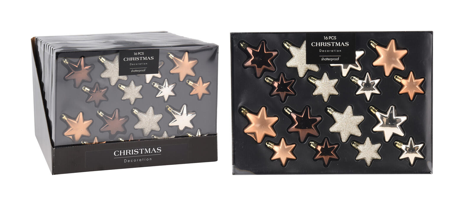 Ozdoba vánoční HVĚZDA (8 x 6 cm / 8 x 5 cm) HN, ZLA mix (16 ks).