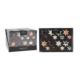 Vánoční sada obsahuje závěsné ozdoby ve tvaru hvězdy.
