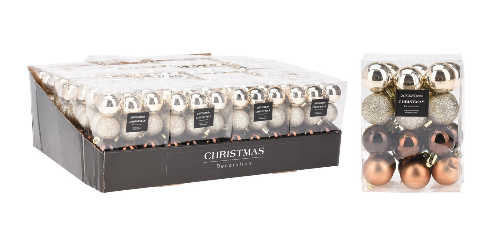 ozdoba vánoční KOULE pr.3cm HN,ZLA mix (24ks)