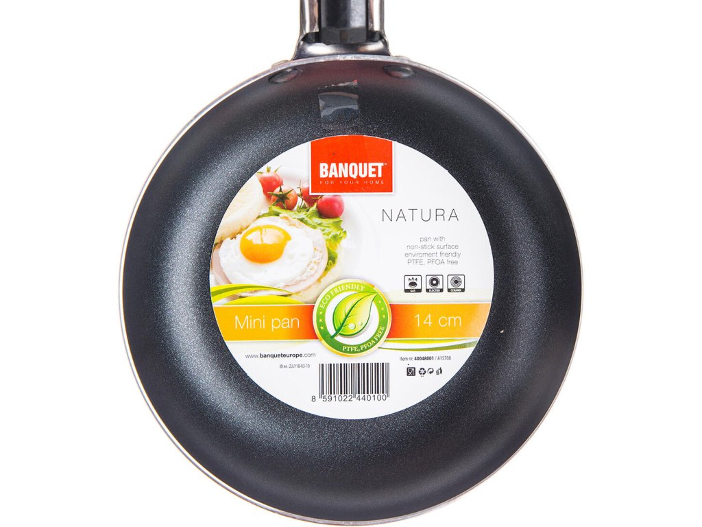 Mini pánev NATURA 14 x 3 cm, nepřilnavý povrch v černé barvě.