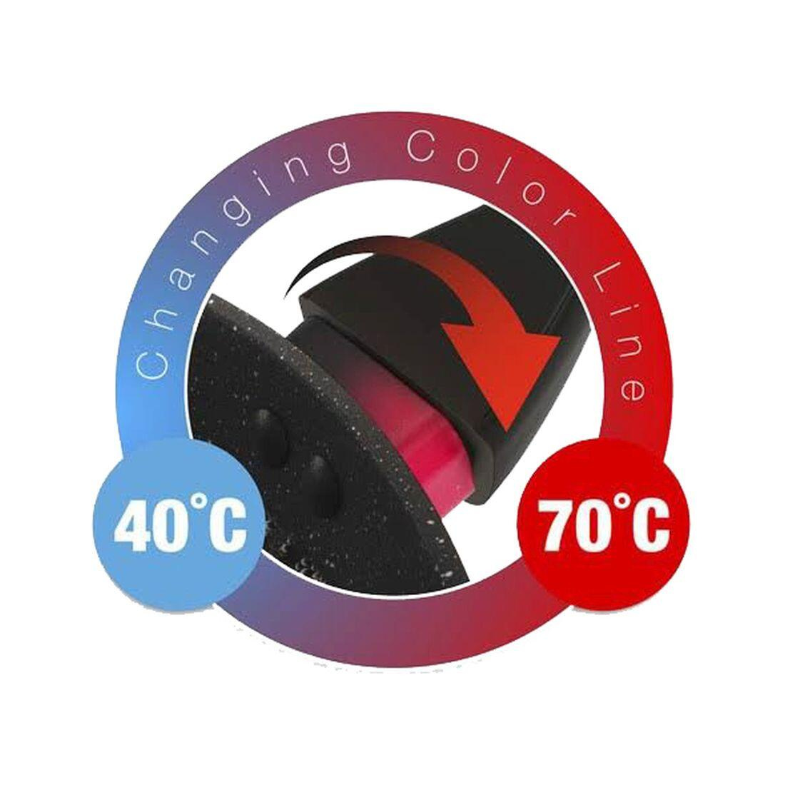 Pánev se vyznačuje novým technologickým prvkem, ochranný prstenec nad rukojetí se postupně se zvyšující teplotou mění z černé na sytě červenou barvu. Změna začíná při 40 st.C a postupně dochází k sycení červené barvy až do 70 st.C, kdy je pánev připravena k plnému vaření.