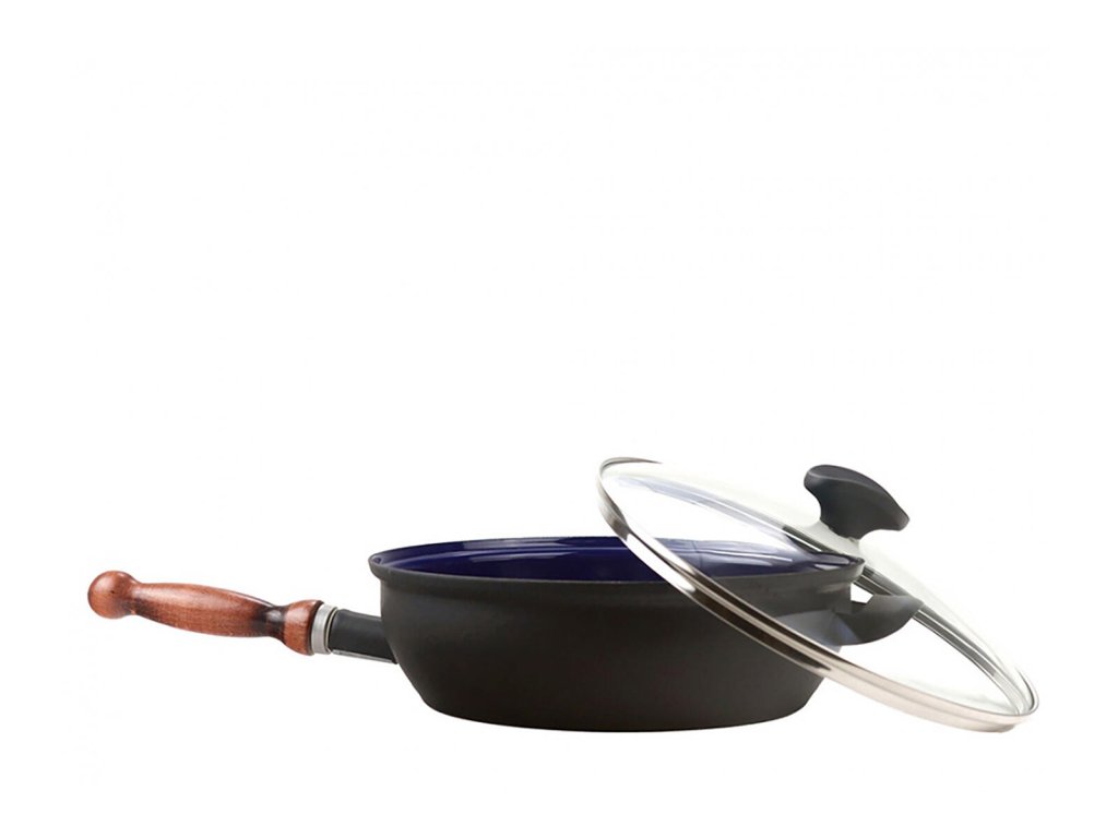 Smaltovaná litinová pánev se skleněnou poklicí, která rovnoměrně rozvádí teplo a je ideální na dokonalé tepelné zpracování potravin.