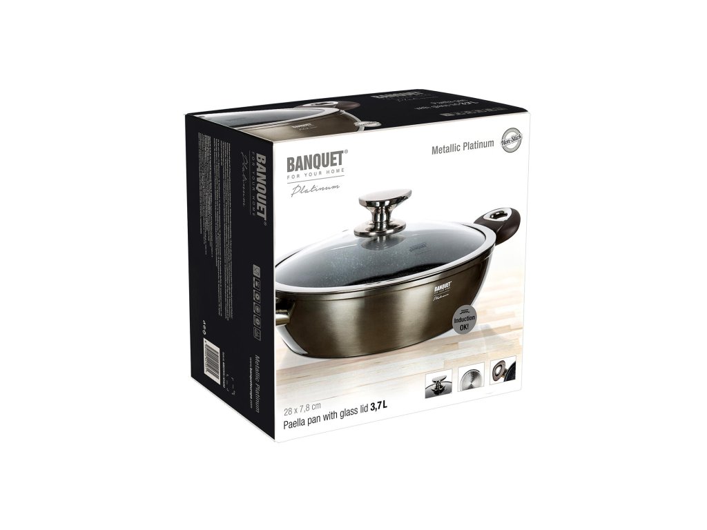 Pánev 28 x 7,8 cm, PAELLA, nepřilnavý povrch, METALLIC PLATINUM, se skl. poklicí.