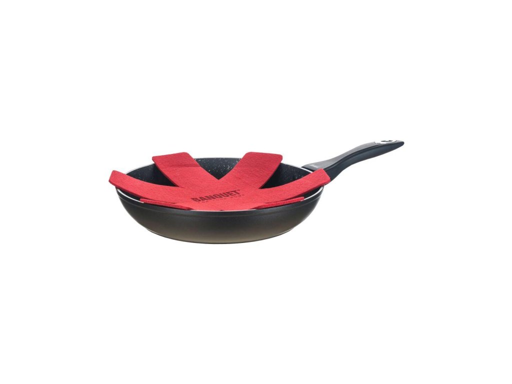 Součástí balení je proložka na pánve v červené barvě.