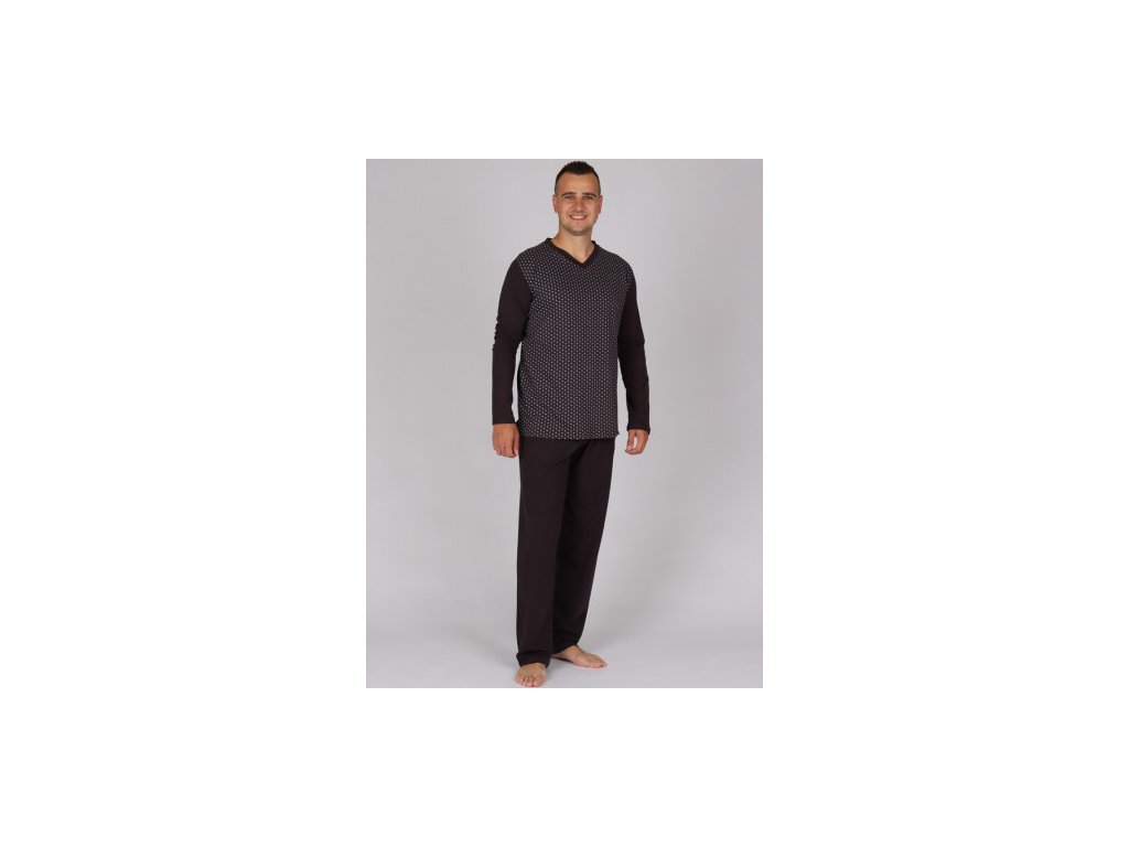 Pohodlné pánské pyžamo z čisté bavlny je příjemné na tělo. Pyžamo se skládá z trika a kalhot s dlouhou nohavicí. Je ideální na chladnější roční období.