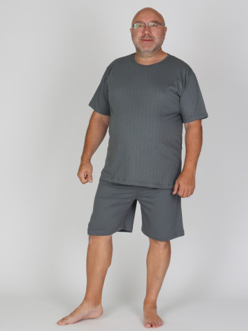 I pro pořádné chlapy máme pyžama! Pánské krátké pyžamo P BIGGER v nadměrných velikostech se skládá z trika s drobným potiskem a jednobarevných krátkých kalhot.
