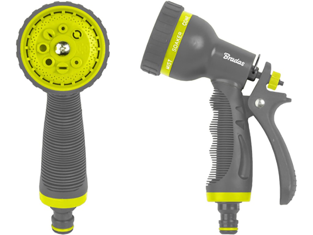 - jednoduchá volba proudu vody otáčením kolečka a výběr z osmi funkcí, umožňuje zalévání různými proudy od přímého proudu až po jemný postřik