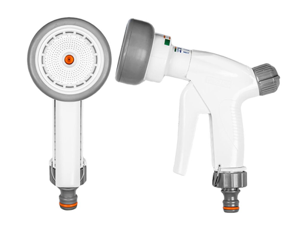Nastavitelná rozstřikovací pistole MULTI SPRAY WHITE LINE pro zahradní hadice rozširuje možnosti postřiku.