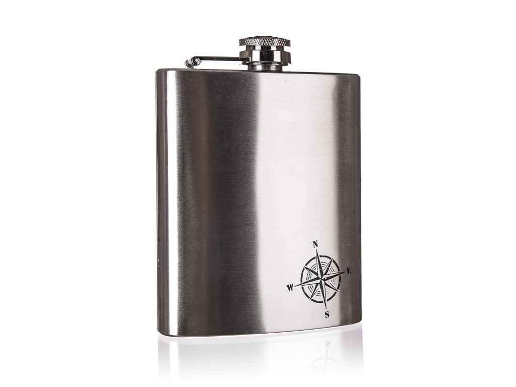 Nerezová placatka AKCENT s potiskem "'North'" o objemu 203 ml (7oz) je vhodná na mošty a lihové nápoje.