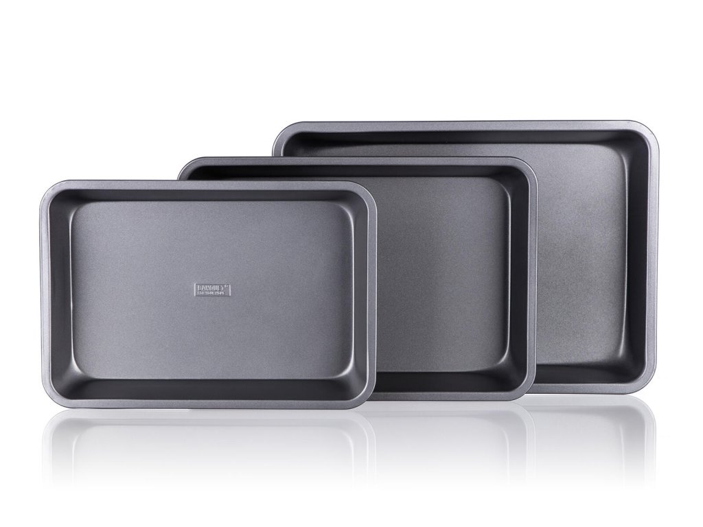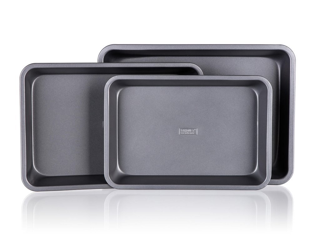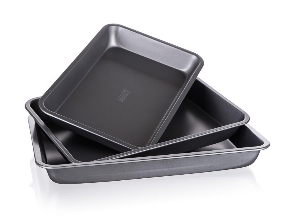 3dílná sada obdélníkových plechů s nepřilnavým povrchem.