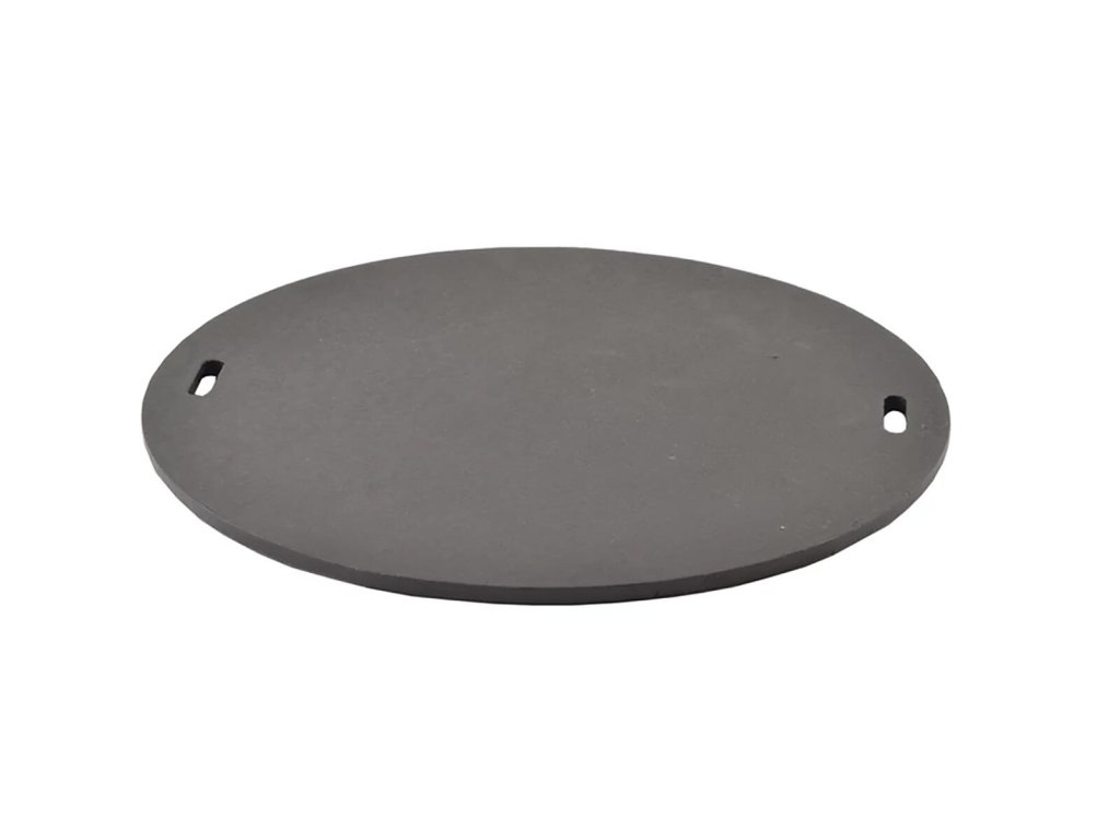 Kruhová litinová plotýnka na plynový sporák rozvádí teplo z plamenů, které by mohlo způsobit připalování v tenkostěnném nádobí.