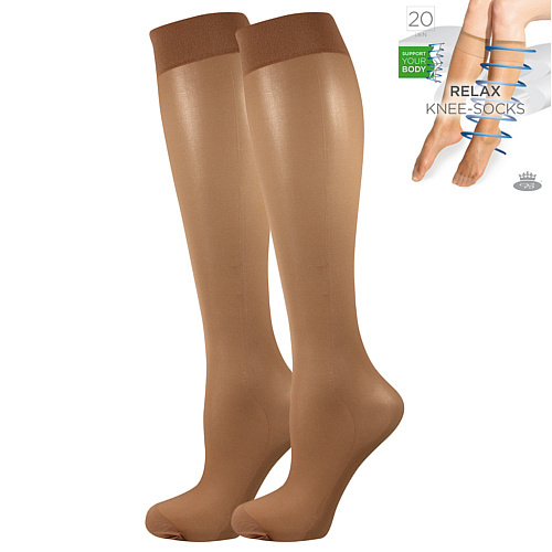 Dámské podpůrné podkolenky z kolekce LadyB RELAX KNEE SOCKS v síle 20 DEN jsou díky speciálně zapletenému elastanu vhodné na prevenci vzniku křečových žil a pocitům tzv. těžkých nohou. Kvalitní podkolenky jsou díky jemnému svěru lemu příjemné na celodenní nošení. Univerzální dámská velikost bez paty, zato se zesílenou špicí pro delší životnost a ochraně proti otlakům. Silonové podkolenky jsou vyrobené z kvalitního úpletu, navíc příjemně parfémované. Kvalitní podkolenky najdete balené v extra sáčku a v krabičce.