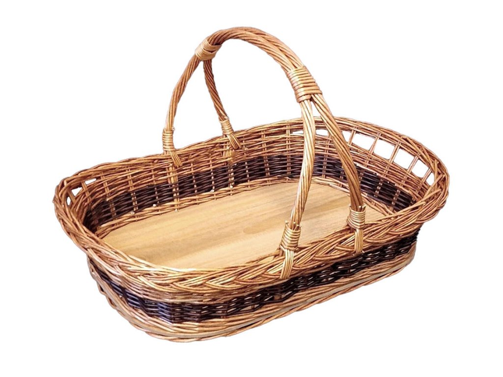 Podnos s pevným dnem a výpletem z lakového vrbového proutí v přírodní barvě je praktický pomocník do vaší domácnosti, či chatu, chalupu.