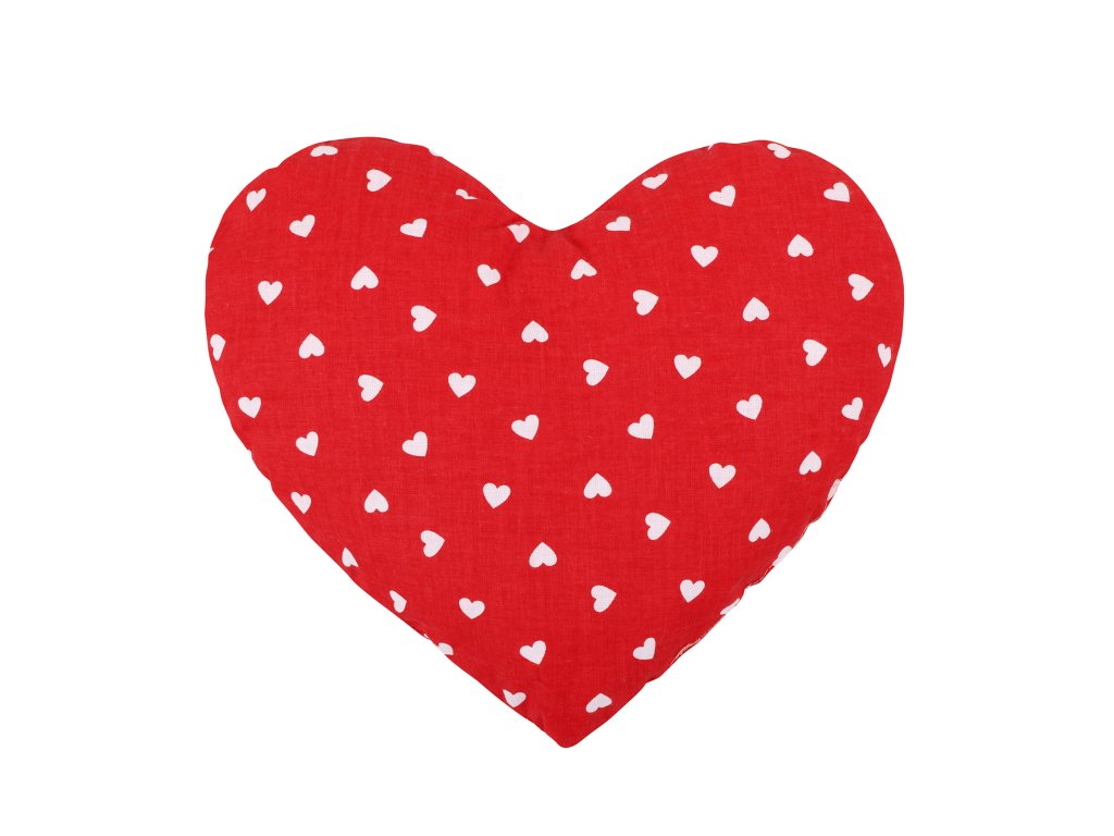 Romantický polštářek ve tvaru srdce je krásným doplňkem, který vnese do interiéru lásku, pohodu a něžnou atmosféru. Červený podklad zdobí jemný vzor bílých srdíček, díky kterému polštář působí elegantně i hravě zároveň.