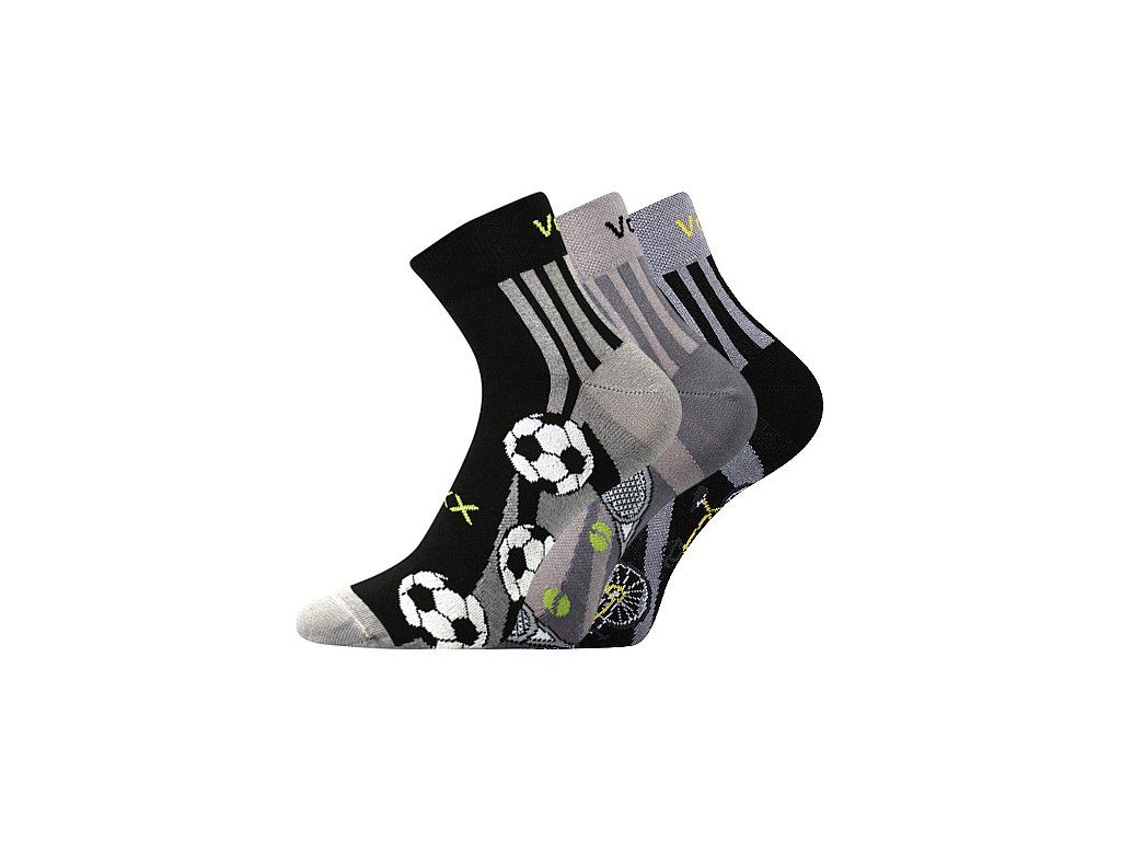 Slabé pánské ponožky VoXX® ABRAS jsou díky vysokému podílu česané bavlny příjemné na omak. Sportovní ponožky mají střední výšku, na nártu elastickou zónu, která zabraňuje přetočení ponožky v obuvi. Lem je volný a nepříjemně nestahuje, řetízkovaná špice nikde netlačí. Téma fotbal, bike/cyklo nebo tenis se bude sportovně založeným zákazníkům určitě líbit. Ponožky v teplotní třídě A jsou vhodné do rozmezí teplot od +10°C do +35°C.