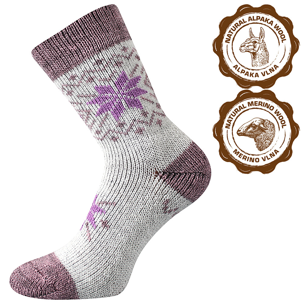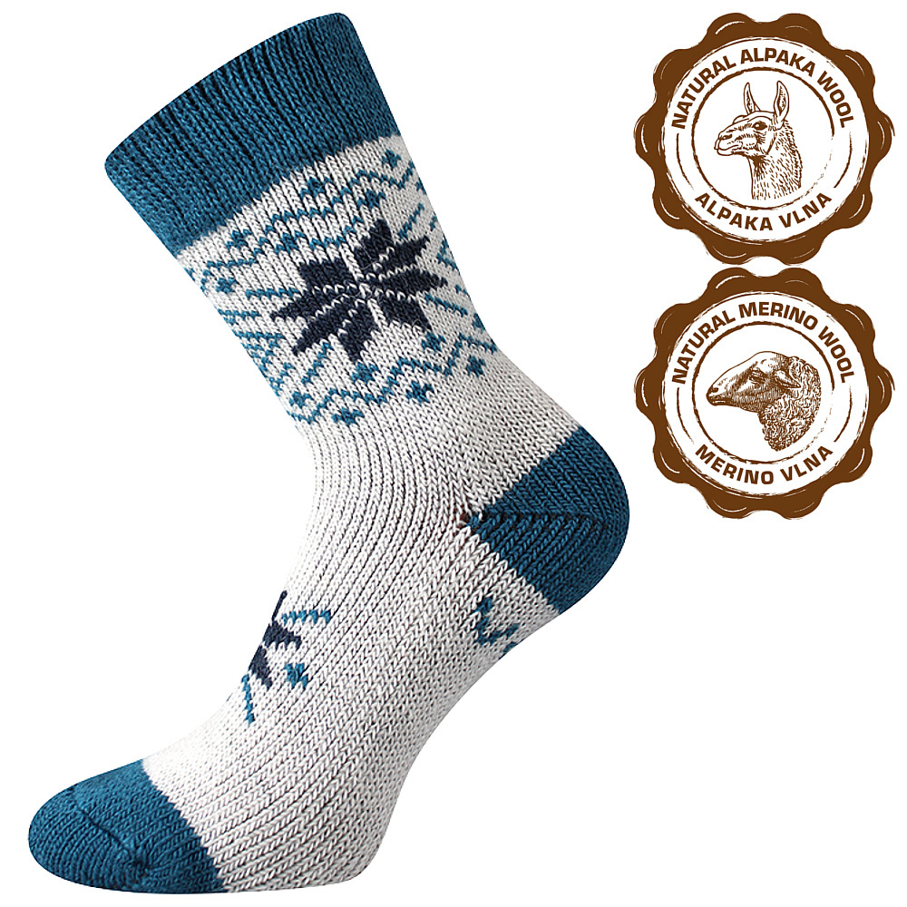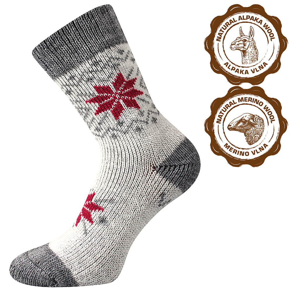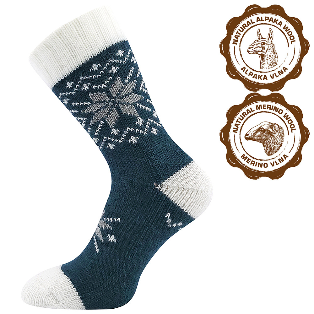 Silné vlněné ponožky VoXX® ALTA se řadí mezi nejteplejší ponožky kolekce VoXX. Budete se cítit jako v bavlnce díky jejich silnému froté doplněného navíc o polstrované zóny proti otlakům a puchýřům. Jemný svěr lemu nikde nohu nestahuje, vysoká prodyšnost materiálu zajišťuje komfort při nošení. Jsou přirozeně antibakteriální, se samotnými přírodní materiály merino vlna a vlna alpaka zažijete maximální tepelný comfort. Jsou řazené do teplotní třídy D v rozmezí -35°C až -10°C.