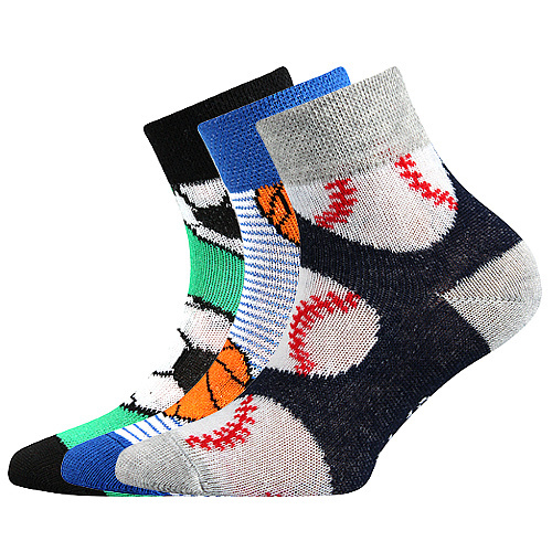 Dětské ponožky Boma® ARNOLD jsou jak stvořené pro malé i větší fotbalisty! Chlapecké slabé ponožky s motivy fotbalových míčů prodáváme v mixu. Bavlněné ponožky v klasické výšce jsou vhodné na celodenní nošení i díky řetízkované špičce, která nikde netlačí.