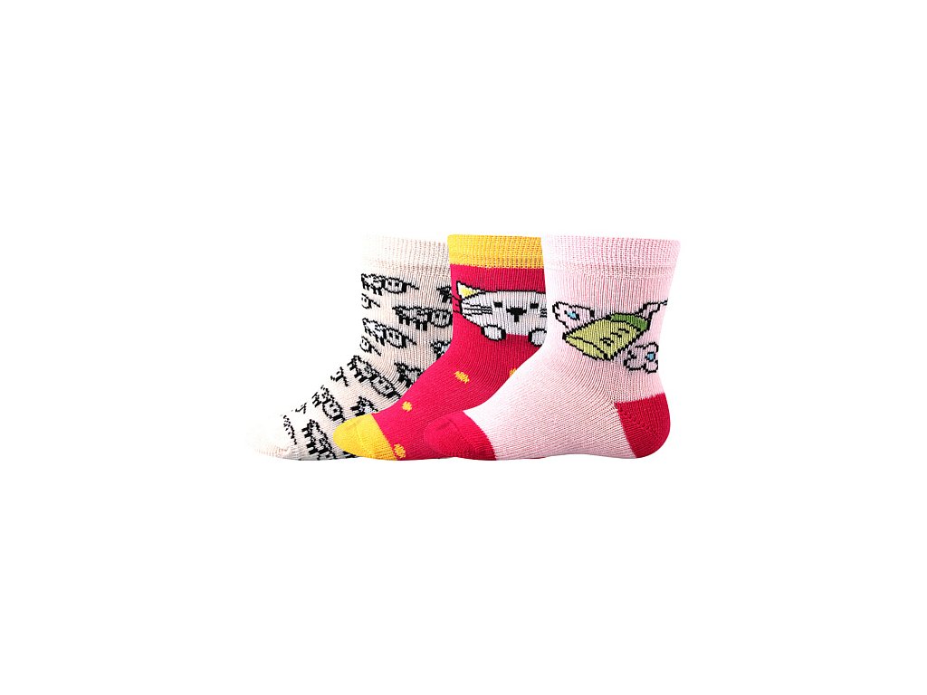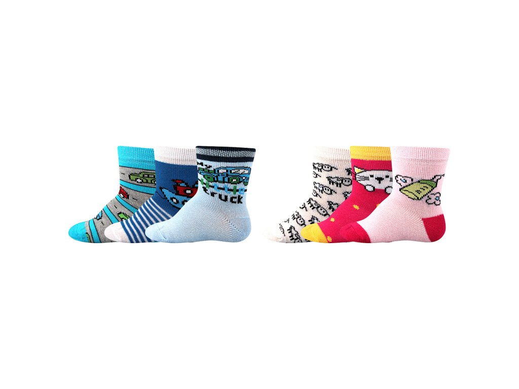 Kojenecké ponožky Boma® BEJBIK pro naše nejmenší zákazníky. Barevné a veselé ponožky s různými obrázky prodáváme v mixu. Slabé ponožky jsou bavlněné s podílem elastanu, takže jsou příjemné na pokožce ale zároveň jsou pružné a dobře si drží tvar.