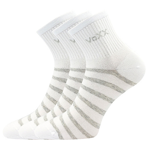 Dámské ponožky VoXX® BOXANA jsou ideální na letní nenáročné fitness aktivity i celodenní nošení. Výška těsně nad kotník je velmi pohodlná. Žebrovaný lem je jemný a na noze nepříjemně neškrtí. Slabé ponožky mají vyšší podíl bavlny, jemné k pokožce a příjemnější na nošení. Špice je uzavřena náročnějším řetízkováním, díky kterému je spoj dokonale hladký a nehrozí, že ponožka bude tlačit. Díky jemným proužkům bude Váš den hned veselejší! Vhodné do rozmezí teplot od 10°C do +35°C, ponožky jsou v teplotní třídě A.