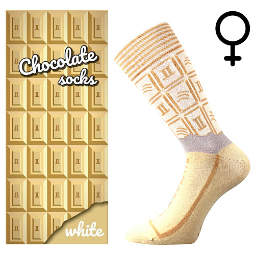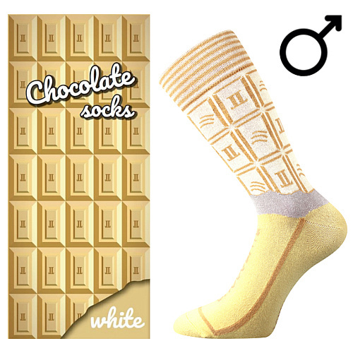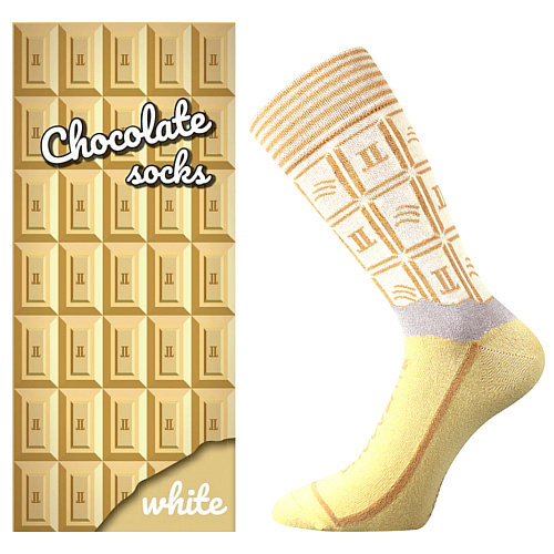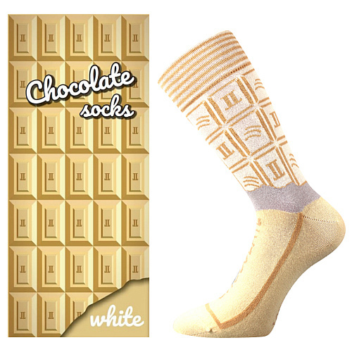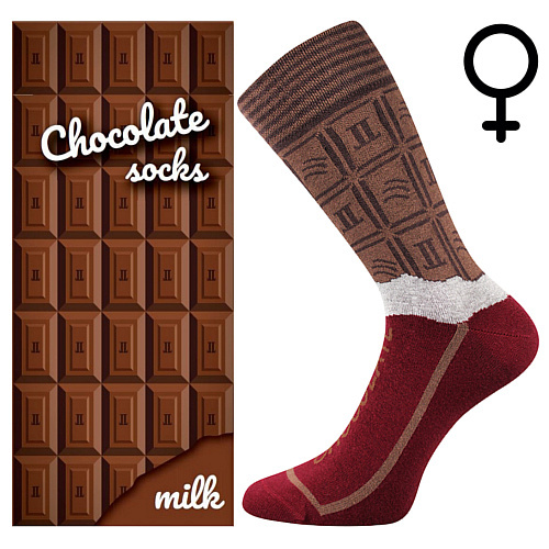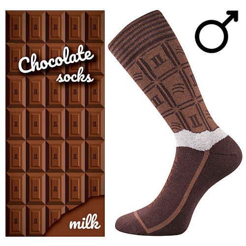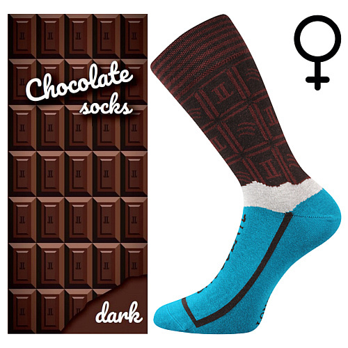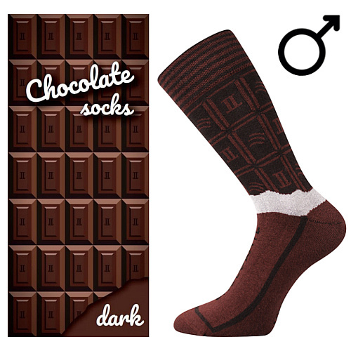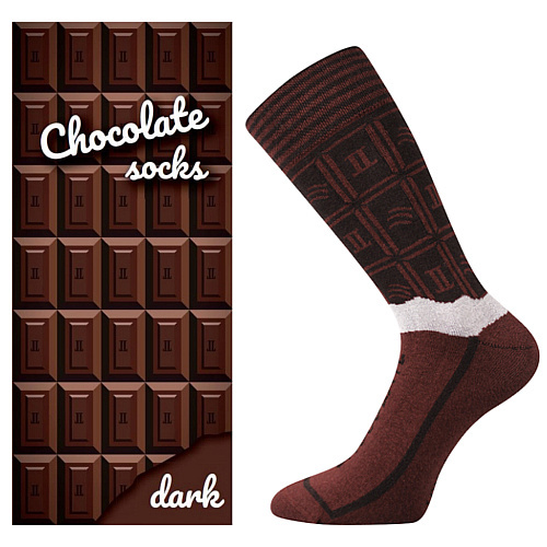 Dámské a pánské „trendy“ ponožky Lonka® CHOCOLATE jsou přímo k nakousnutí. Originální ponožky z příjemné bavlny, v klasické výšce a se špicí spojenou náročnějším řetízkováním budete chtít hned sníst! Zabalené jsou v dárkovém balení, k nerozeznání od pravé tabulky čokolády. Nelze jim odolat a navíc jsou bez kalorií a výčitek!