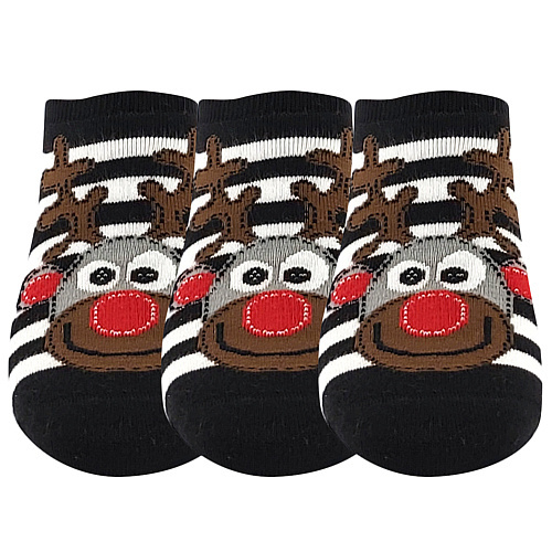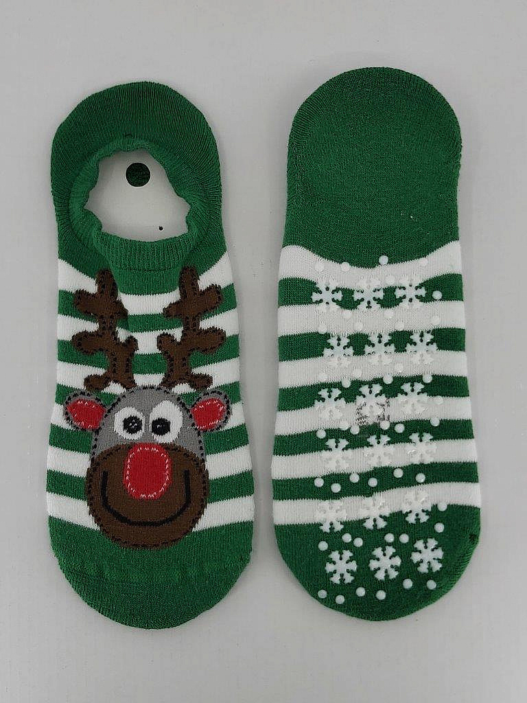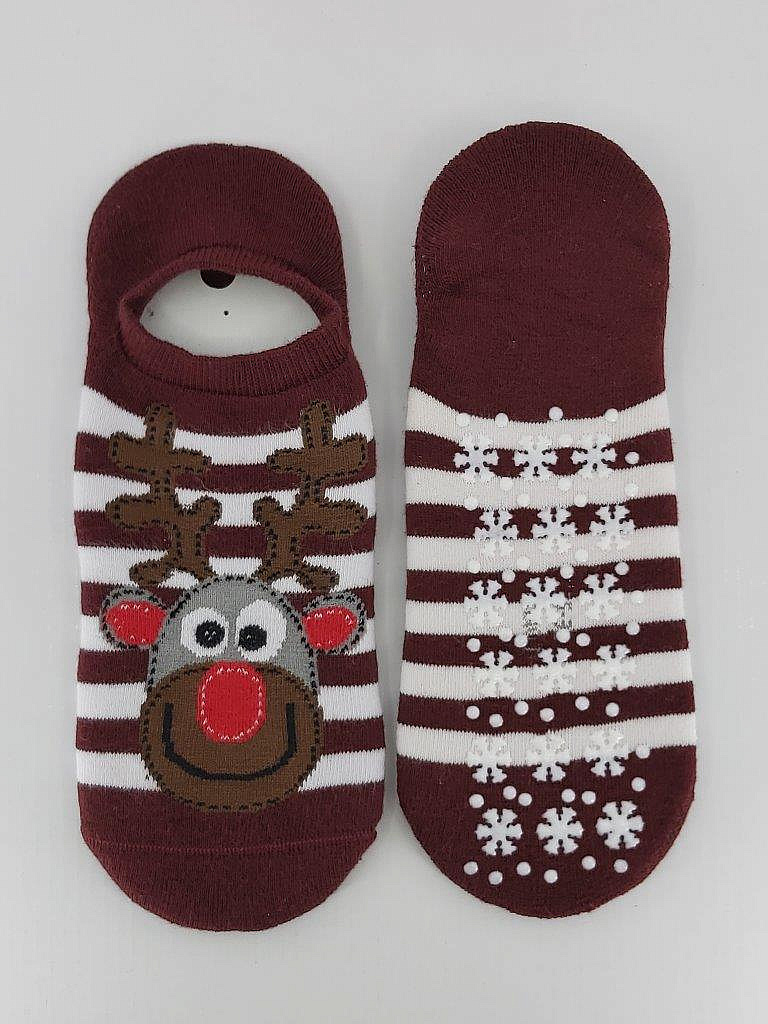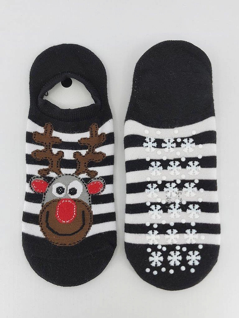 Dámské silné celofroté ponožky z bavlny Lonka® CUPID jsou extra krátké ponožky s protiskluzným ABS ve tvaru vloček na chodidle. Špice je sešitá jemným řetízkováním, spoj je tak hladký. Pruhovaný design zdobí "vánoční" motiv sobíka. Ponožky se dají nosit místo bačkor!