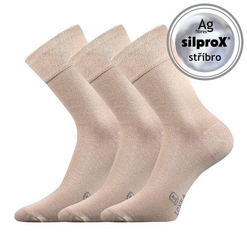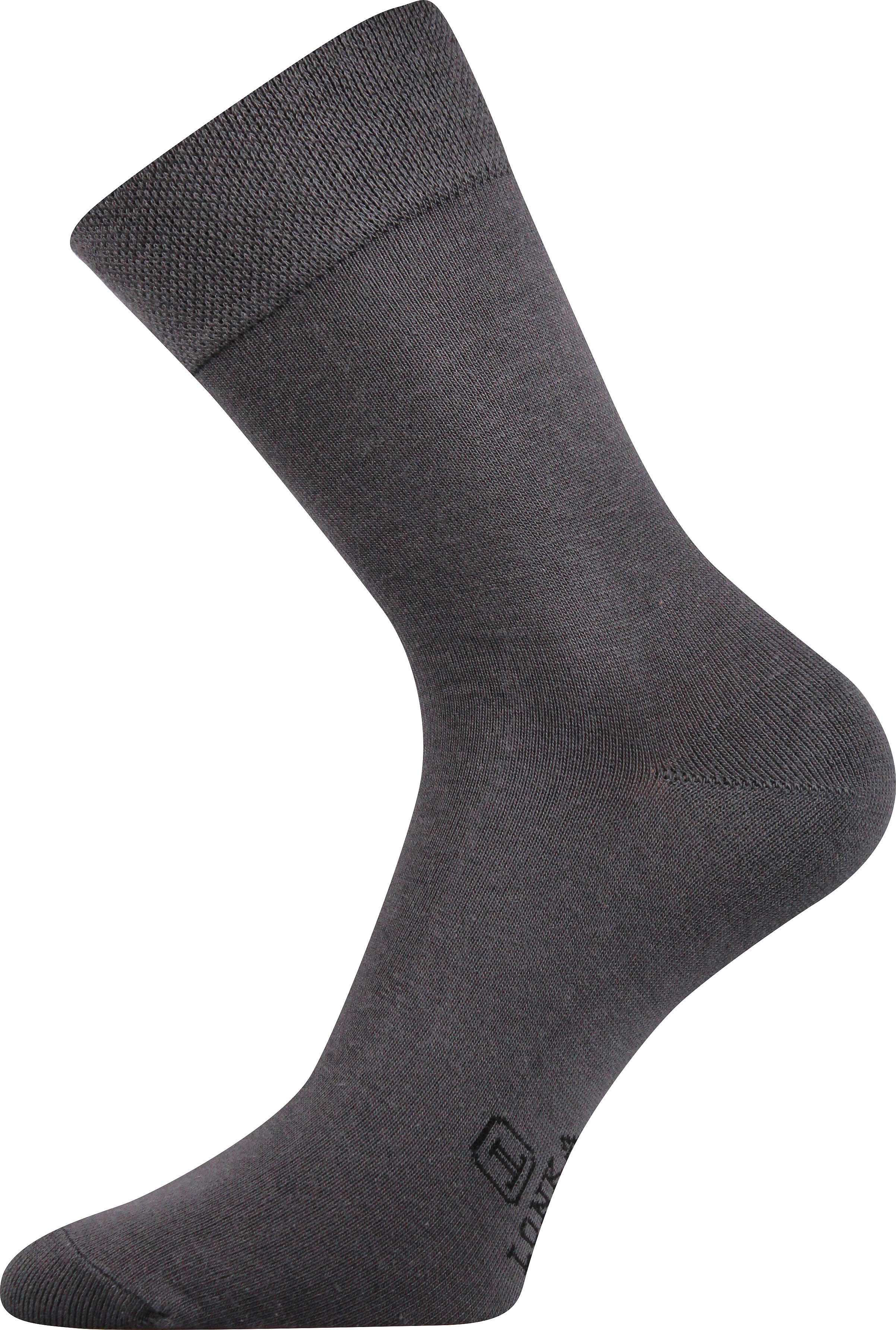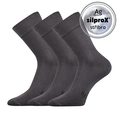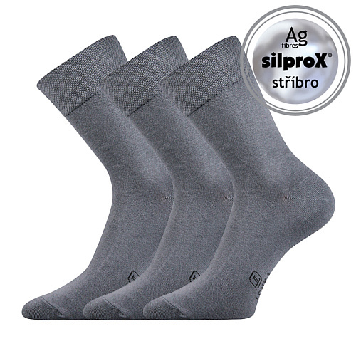 Pánské hladké společenské ponožky Lonka® DASILVER jsou velmi jemné a hladké. Jednobarevné ponožky mají jemně sešitou špici, lem ponožek je extra jemný a nestahující. Vysoký podíl bavlny činí ponožky příjemnější na nošení, díky polypropylenu silproX® s ionty stříbra, které působí antibakteriálně, pak nedochází v ponožkách k tvorbě zápachu. Ponožky tak bez obav můžete nosit po celý den.