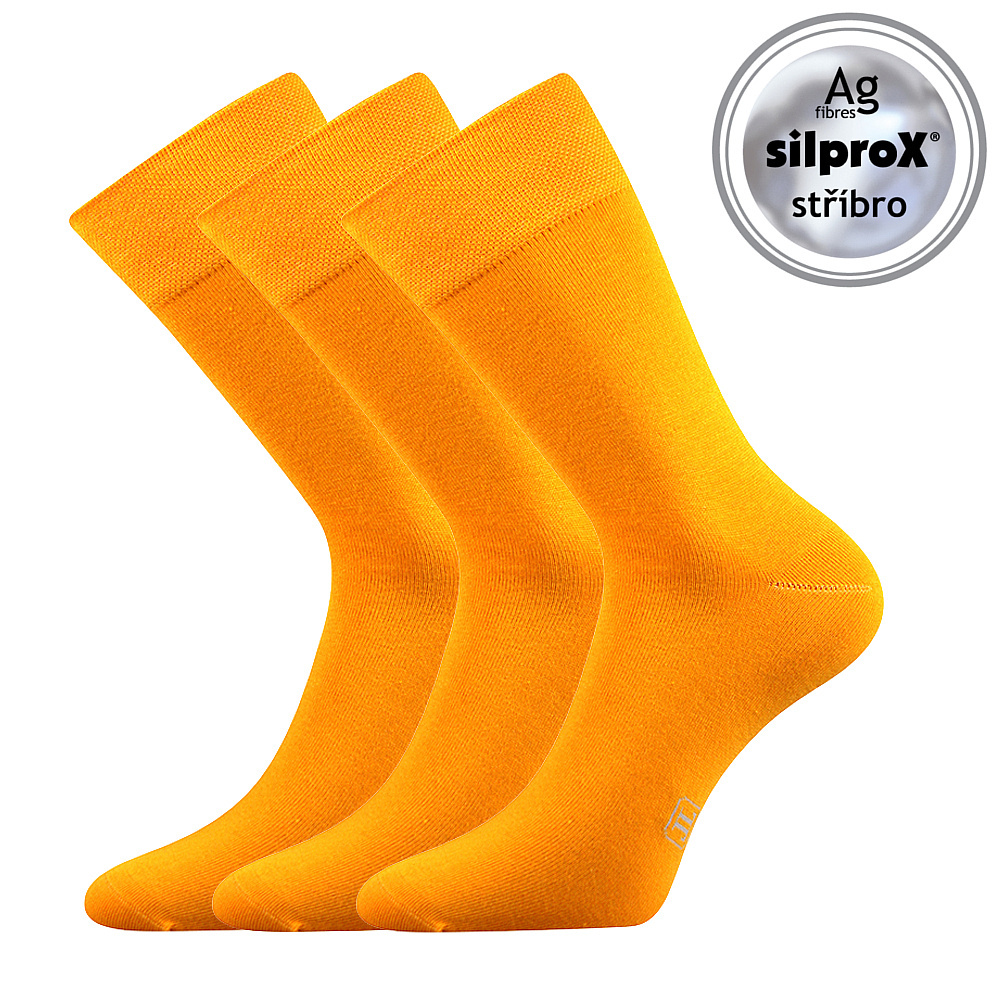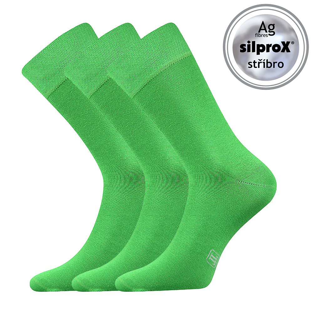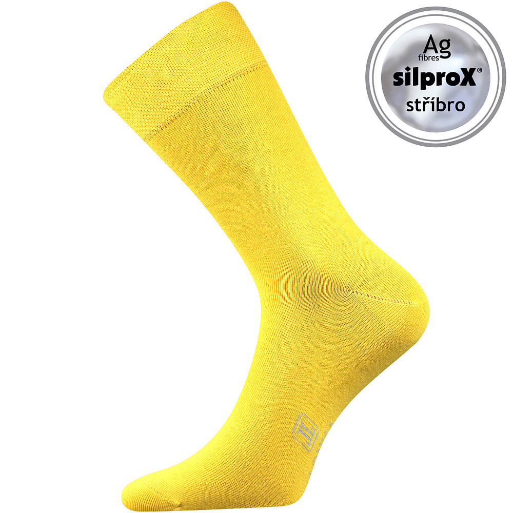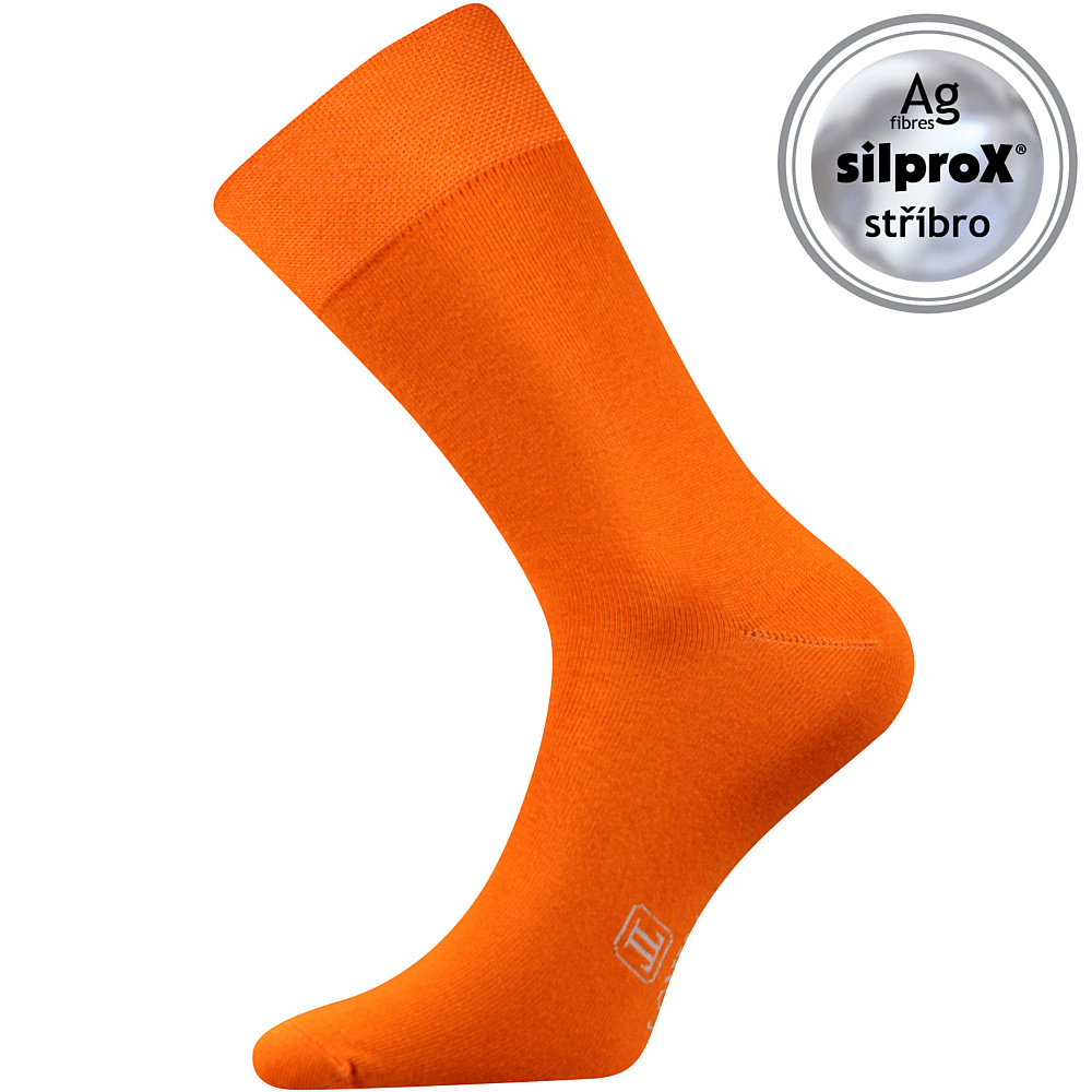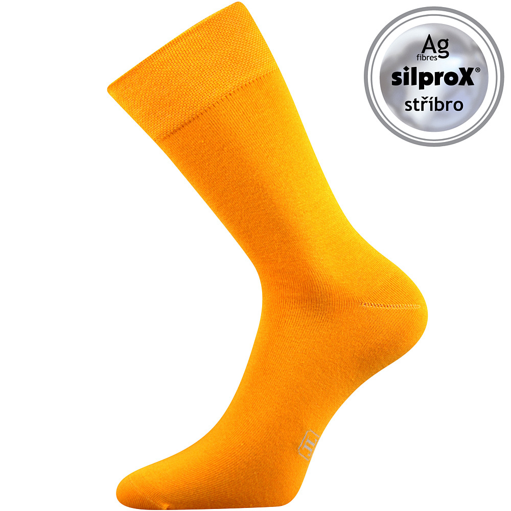 Pánské společenské ponožky Lonka® DECOLOR jsou slabé klasické ponožky nejen do obleku. Bavlněné ponožky s elastanem, s přidanými ionty stříbra v materiálu silproX® pro antibakteriální ochranu. Řetízkovaná špice nikde na prstech netlačí a nevznikají tak otlaky nebo puchýře. Ponožkový lem je jemný a nestahující. Klasické vyšší ponožky jsou dostupné v mnoha barvách, ideální na celodenní nošení.