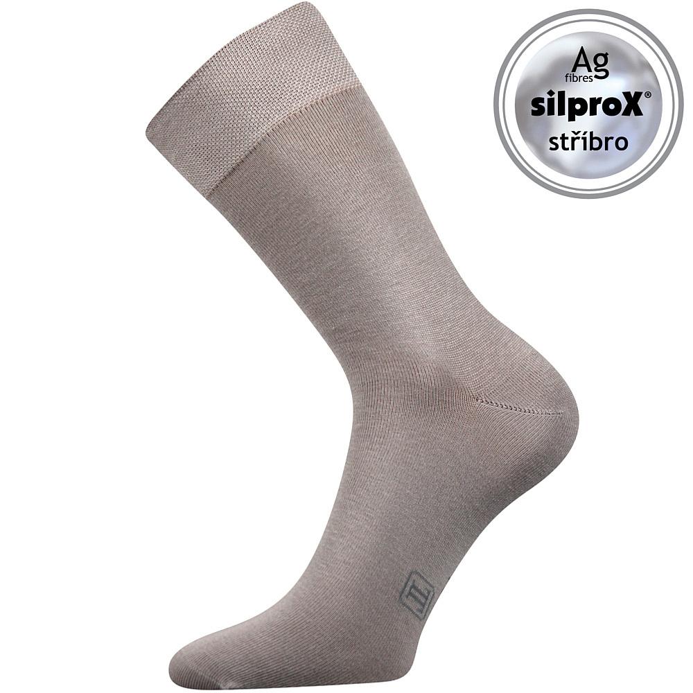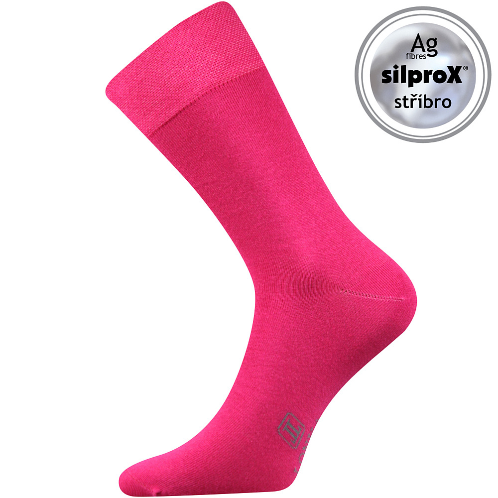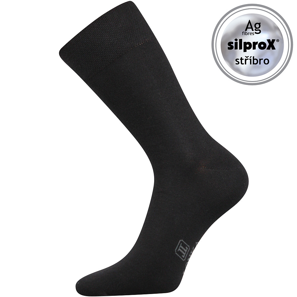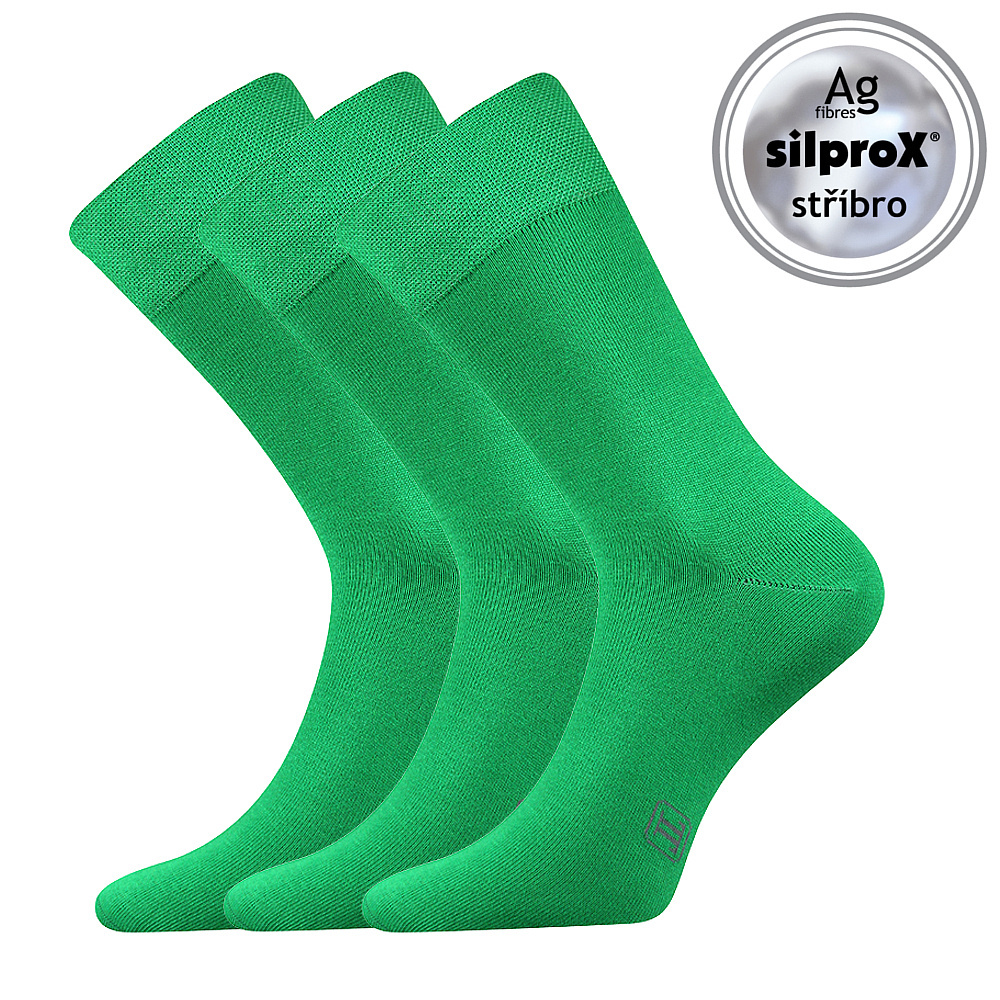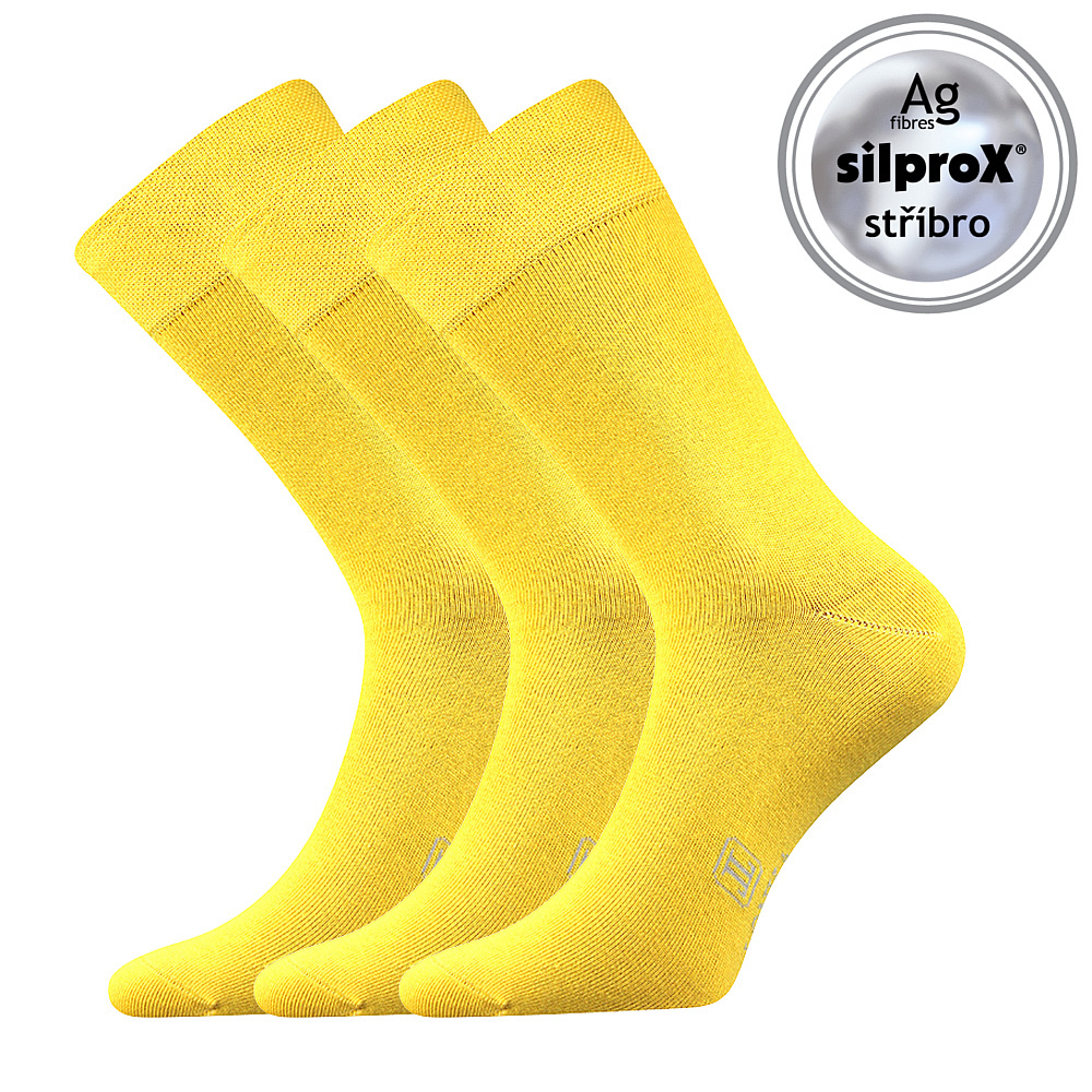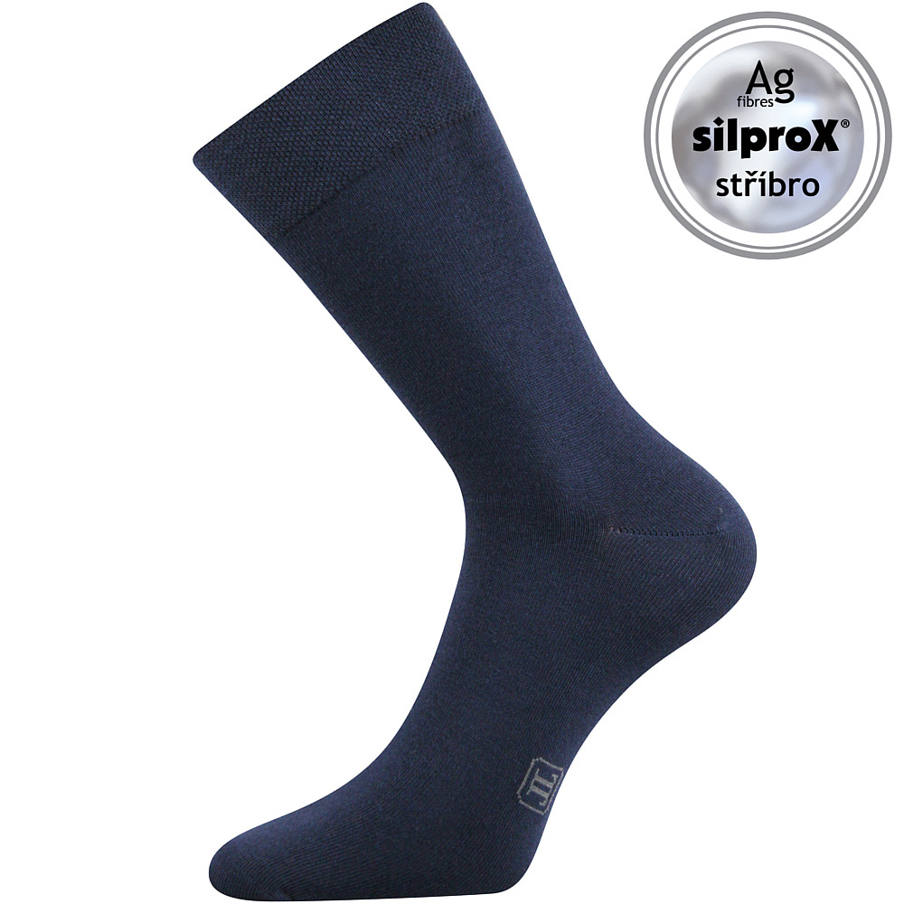 Pánské společenské ponožky Lonka® DECOLOR jsou slabé klasické ponožky nejen do obleku. Bavlněné ponožky s elastanem, s přidanými ionty stříbra v materiálu silproX® pro antibakteriální ochranu. Řetízkovaná špice nikde na prstech netlačí a nevznikají tak otlaky nebo puchýře. Ponožkový lem je jemný a nestahující. Klasické vyšší ponožky jsou dostupné v mnoha barvách, ideální na celodenní nošení.