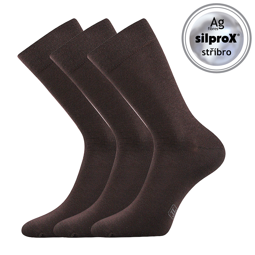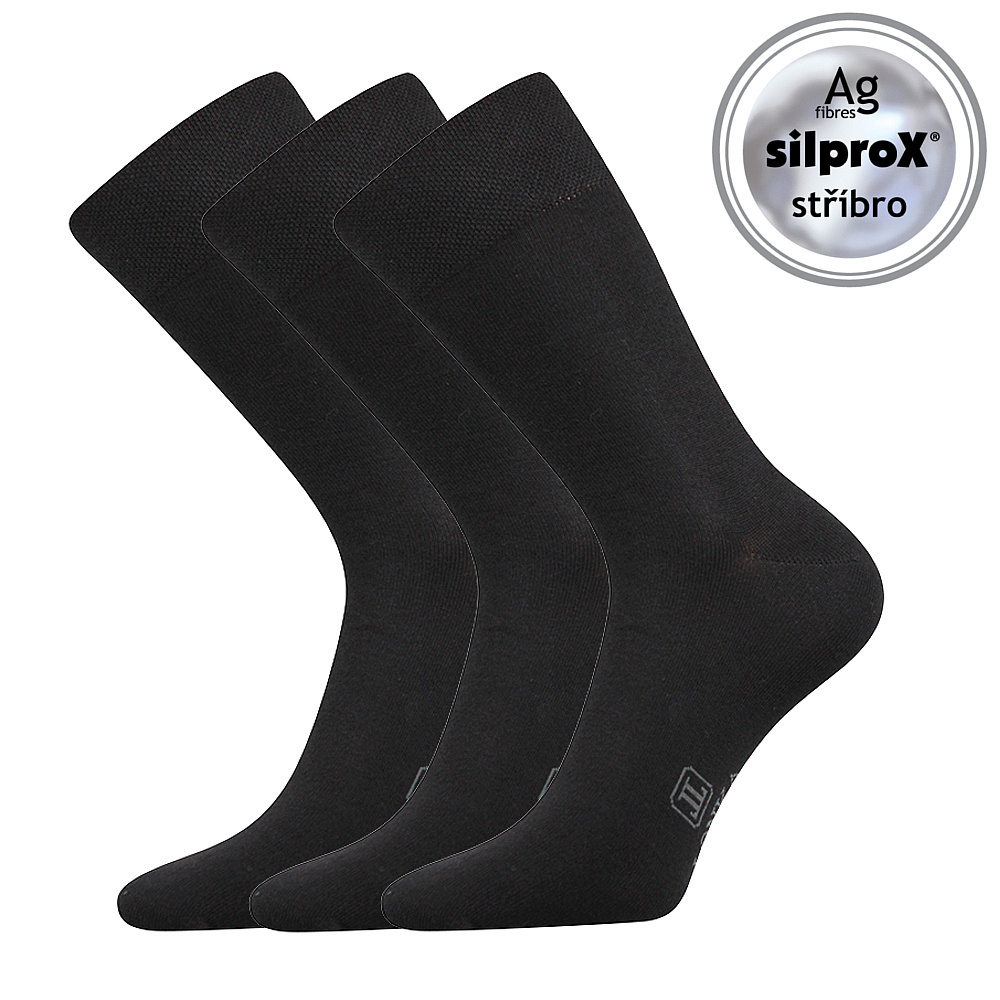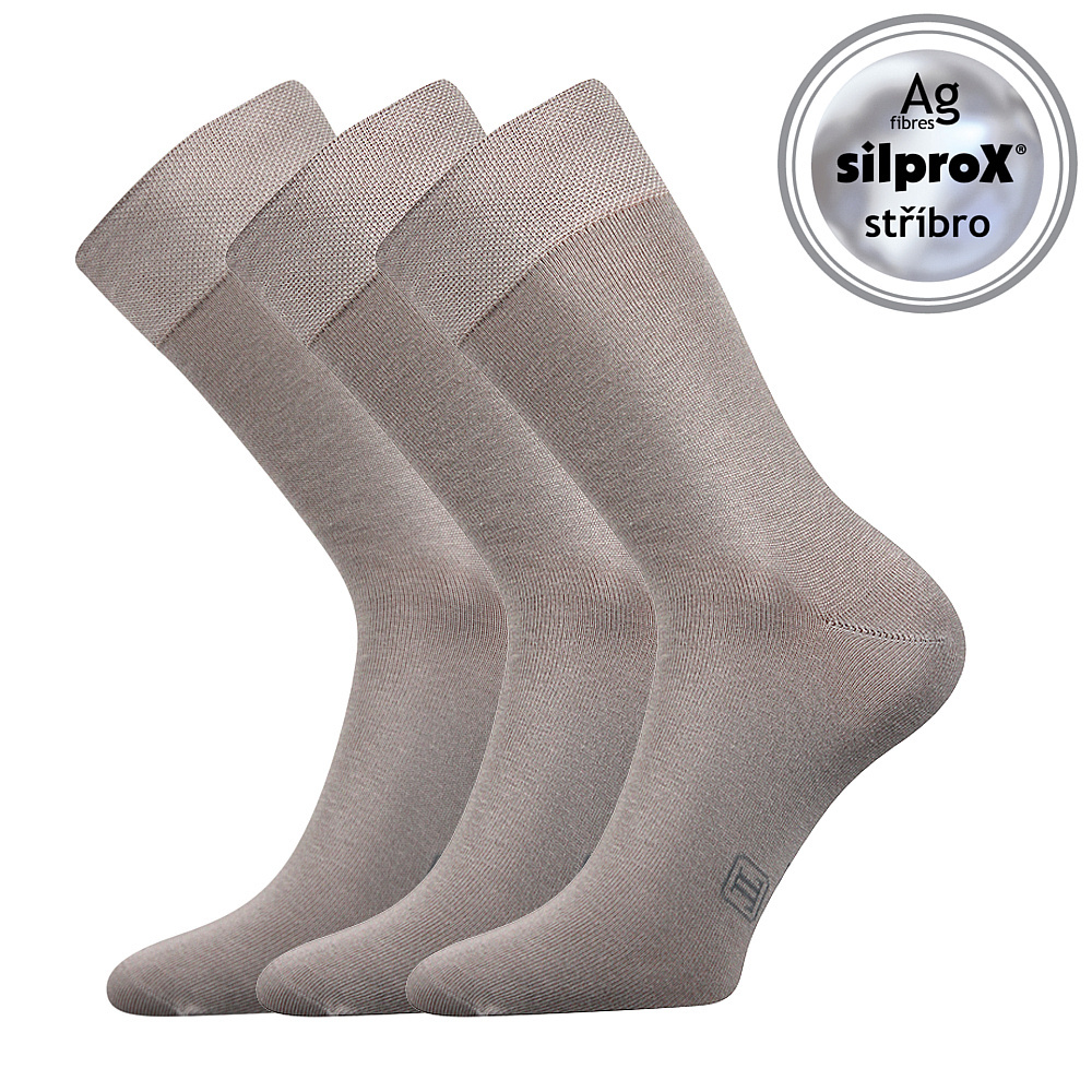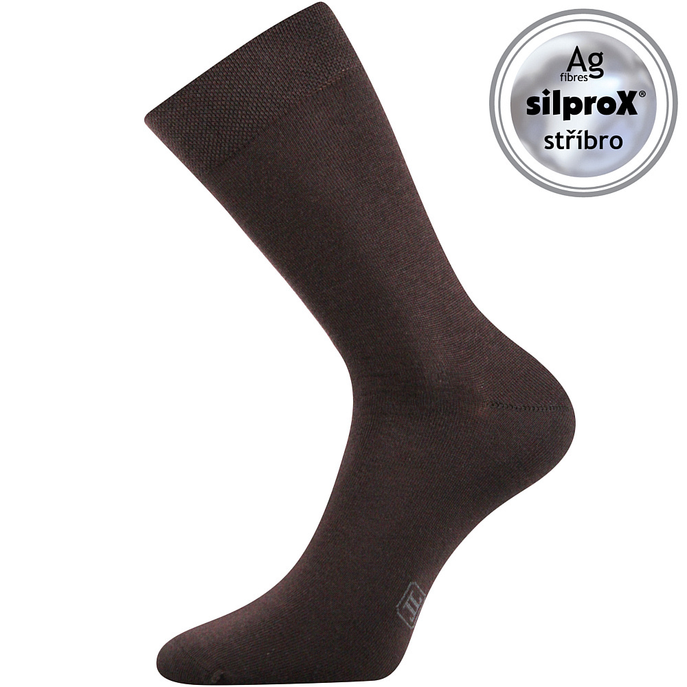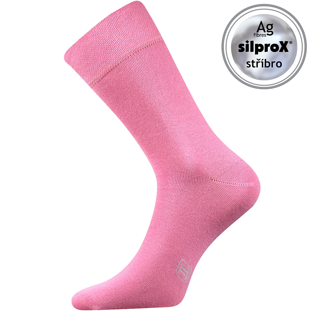 Pánské společenské ponožky Lonka® DECOLOR jsou slabé klasické ponožky nejen do obleku. Bavlněné ponožky s elastanem, s přidanými ionty stříbra v materiálu silproX® pro antibakteriální ochranu. Řetízkovaná špice nikde na prstech netlačí a nevznikají tak otlaky nebo puchýře. Ponožkový lem je jemný a nestahující. Klasické vyšší ponožky jsou dostupné v mnoha barvách, ideální na celodenní nošení.