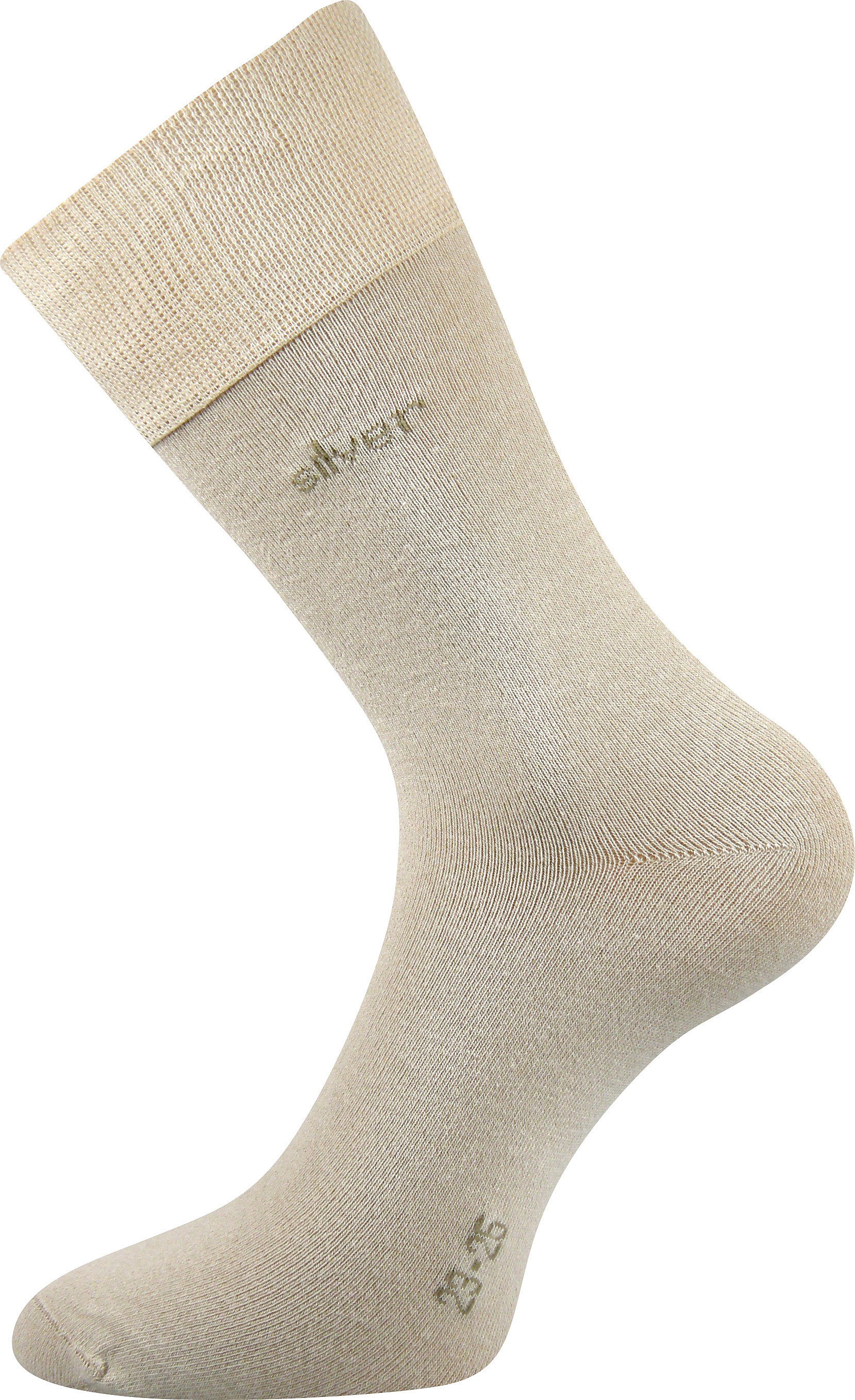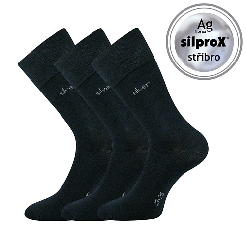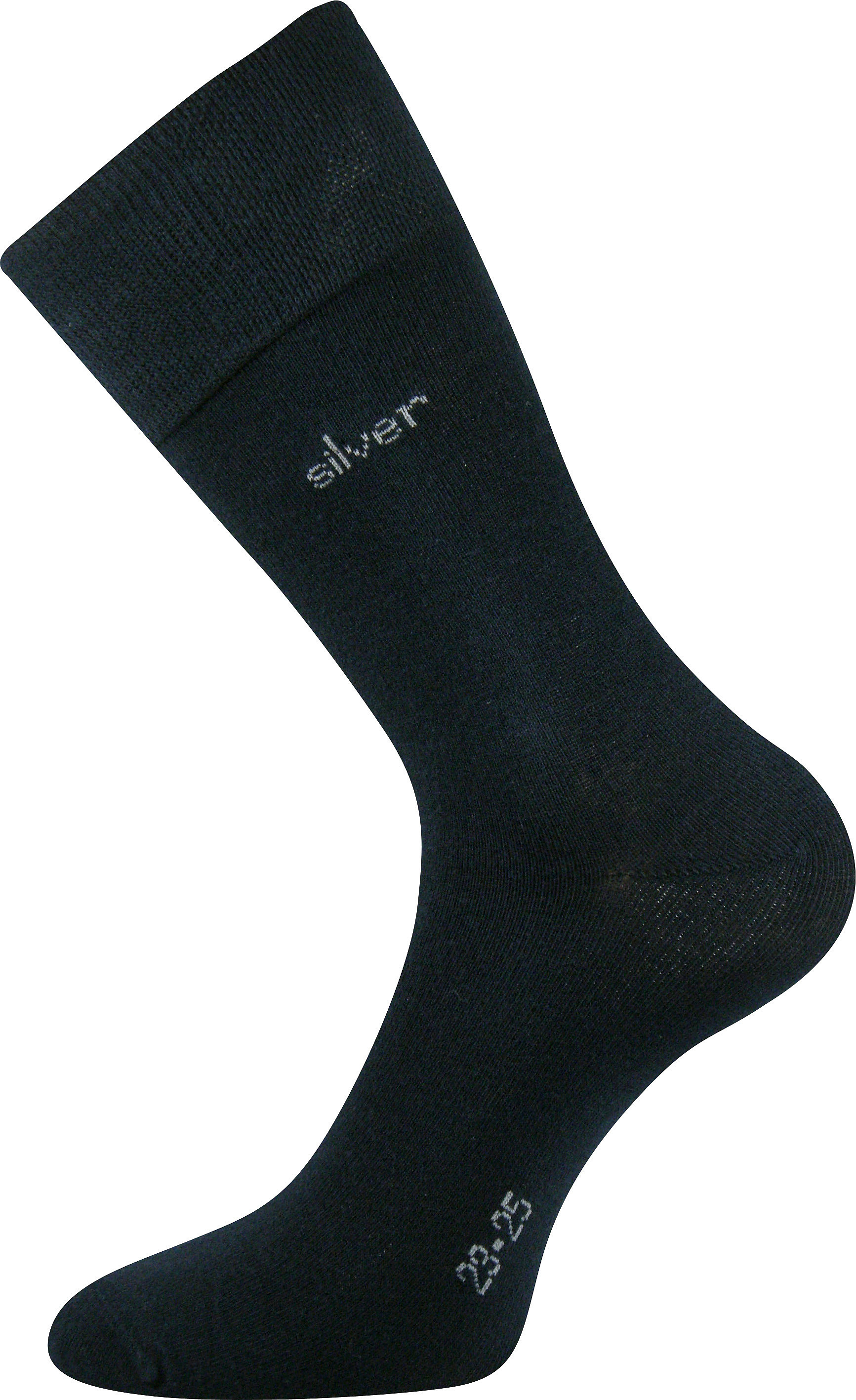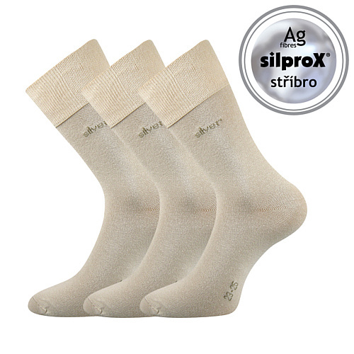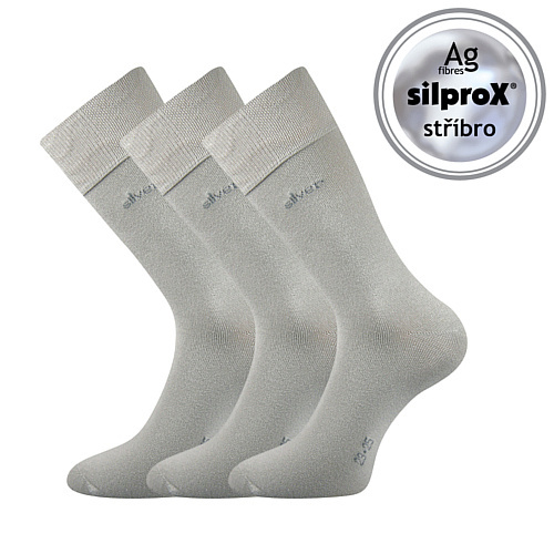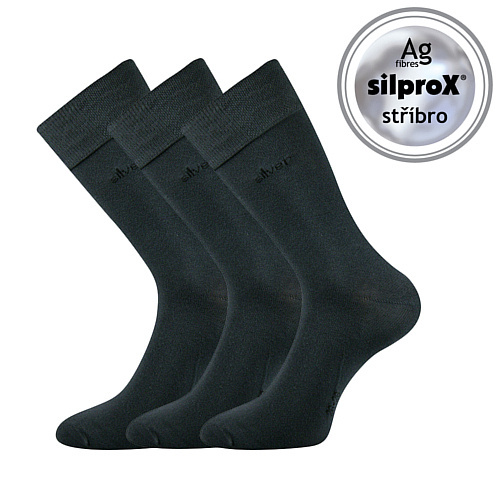 Antibakteriální hladké ponožky Lonka® DESILVE jsou slabé klasické ponožky nejen do obleku. Pro tvarovou stálost jsou bavlněné ponožky doplněné o pružný elastan a materiál silproX® s přidanými ionty stříbra pro antibakteriální ochranu. Řetízkovaná špice nikde na prstech netlačí a nevznikají tak otlaky nebo puchýře. Ponožkový lem je jemný a nestahující. Klasické vyšší ponožky mají decentní nápis, do obleku nebo jen tak jsou ideální na celodenní nošení.