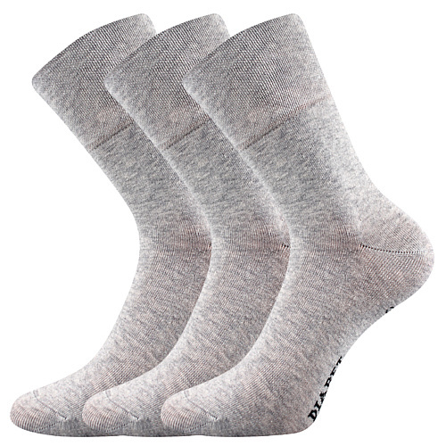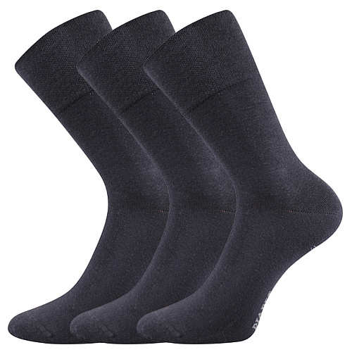 Unisex slabé ponožky Lonka® DIAGRAM mají vysoký extra volný nestahující lem, vhodný i pro oteklé nohy. Jednobarevné ponožky v klasické výšce jsou vhodné jak do společnosti, tak i na celodenní nošení. Díky uzavření špice řetízkováním ponožky nikde netlačí a nevznikají tak otlaky ani puchýře. Bavlněné ponožky jsou velmi příjemné na dotyk a umí dobře pohlcovat vlhkost.