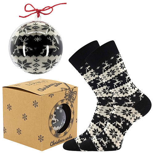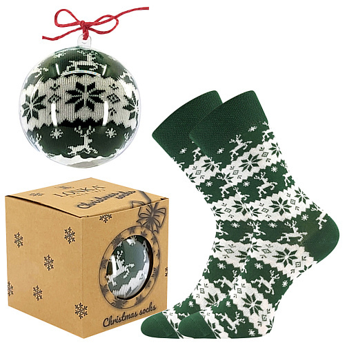Vánoční ponožky Lonka® ELFI jako originální dárek pod stromeček. Pánské, dámské a dětské ponožky se zimním motivem vloček a sobů jsou prostě kouzelné! Klasický norský design naladí tu správnou zimní atmosféru. Vtipné ponožky jsme zabalili do průhledné koule a dárkové krabičky, můžete je tedy pověsit rovnou na stromeček jako ozdobu, nebo je darovat jen tak. Díky elegantní krabičce je nemusíte ani složitě balit. Naše ponožky dokáží potěšit i pobavit zároveň. Bavlněné ponožky mají jemný a nestahující pique lem a příjemně se nosí.